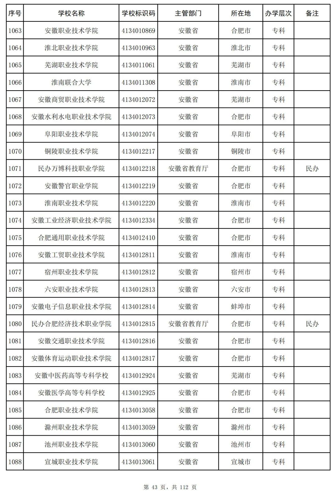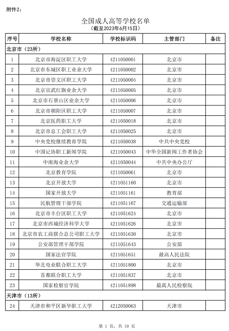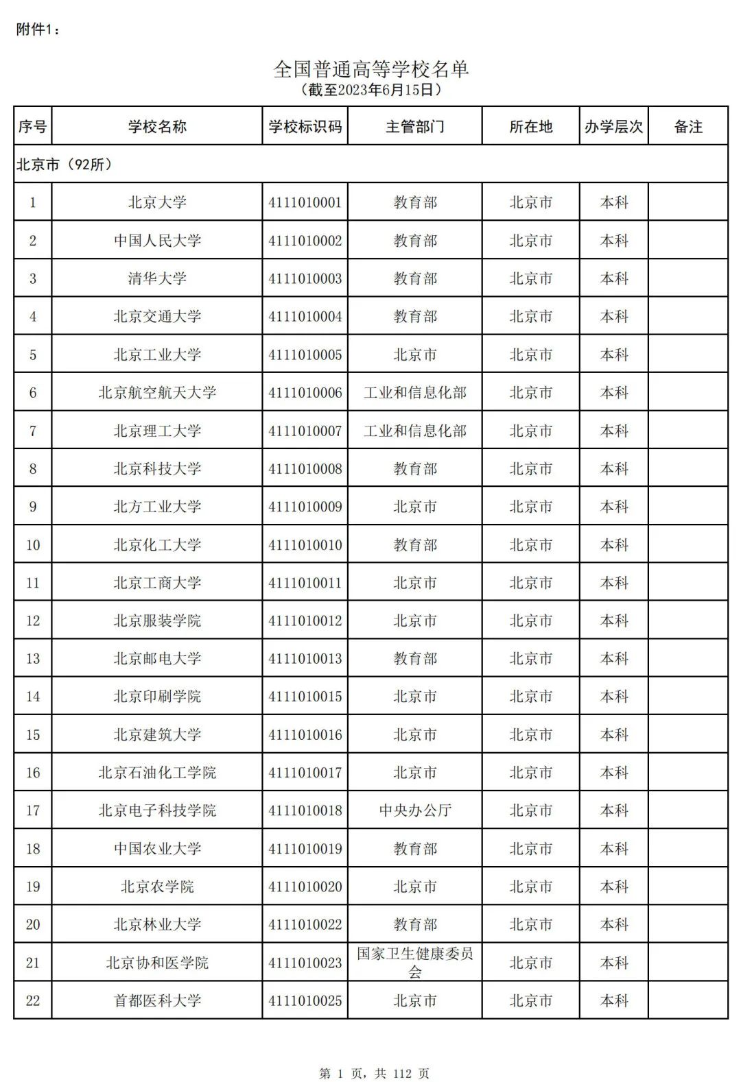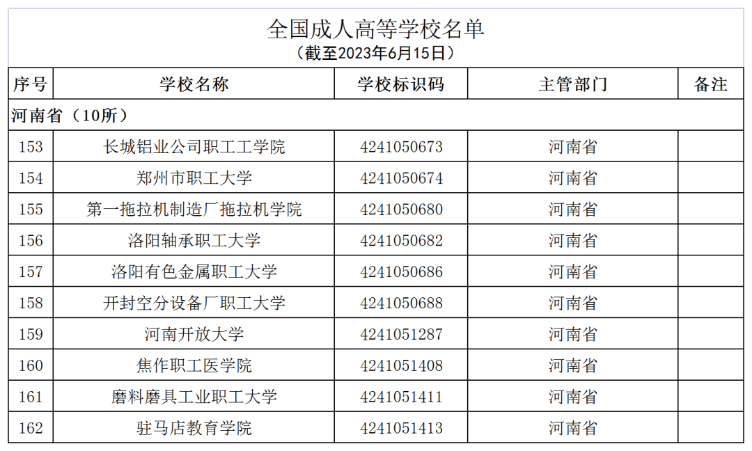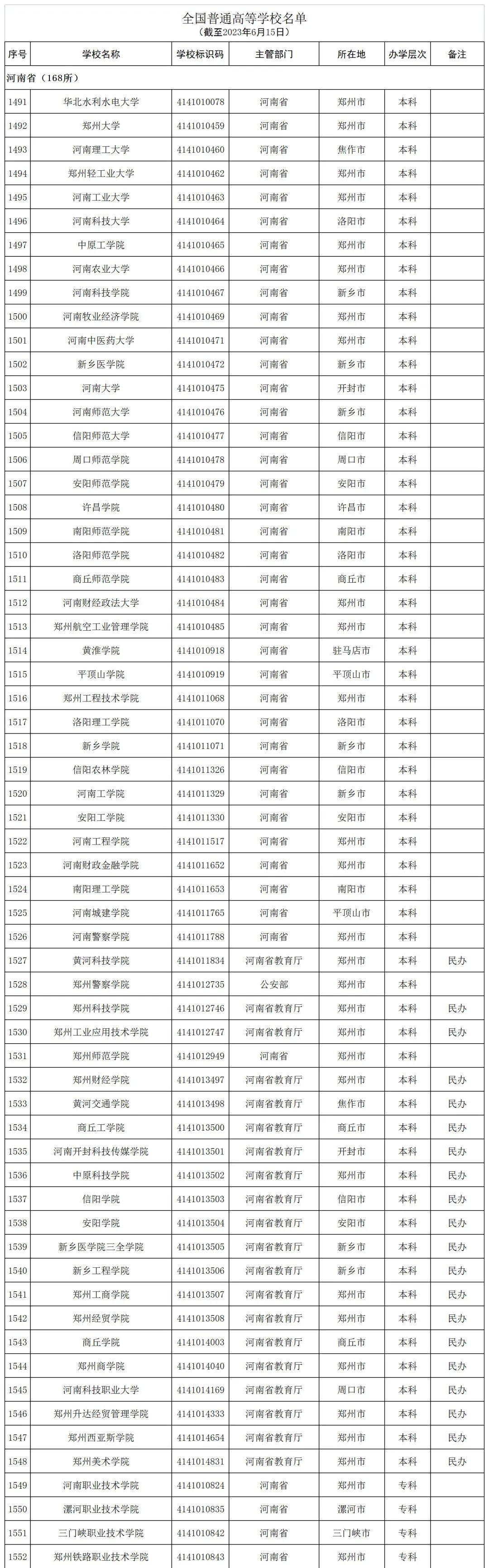截至2023年6月15日,全国共有3072所高等学校,其中包括2820所普通高等学校和252所成人高等学校。值得注意的是,本名单并未包括港澳台地区的高等学校。