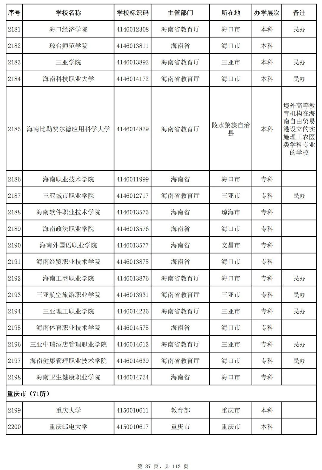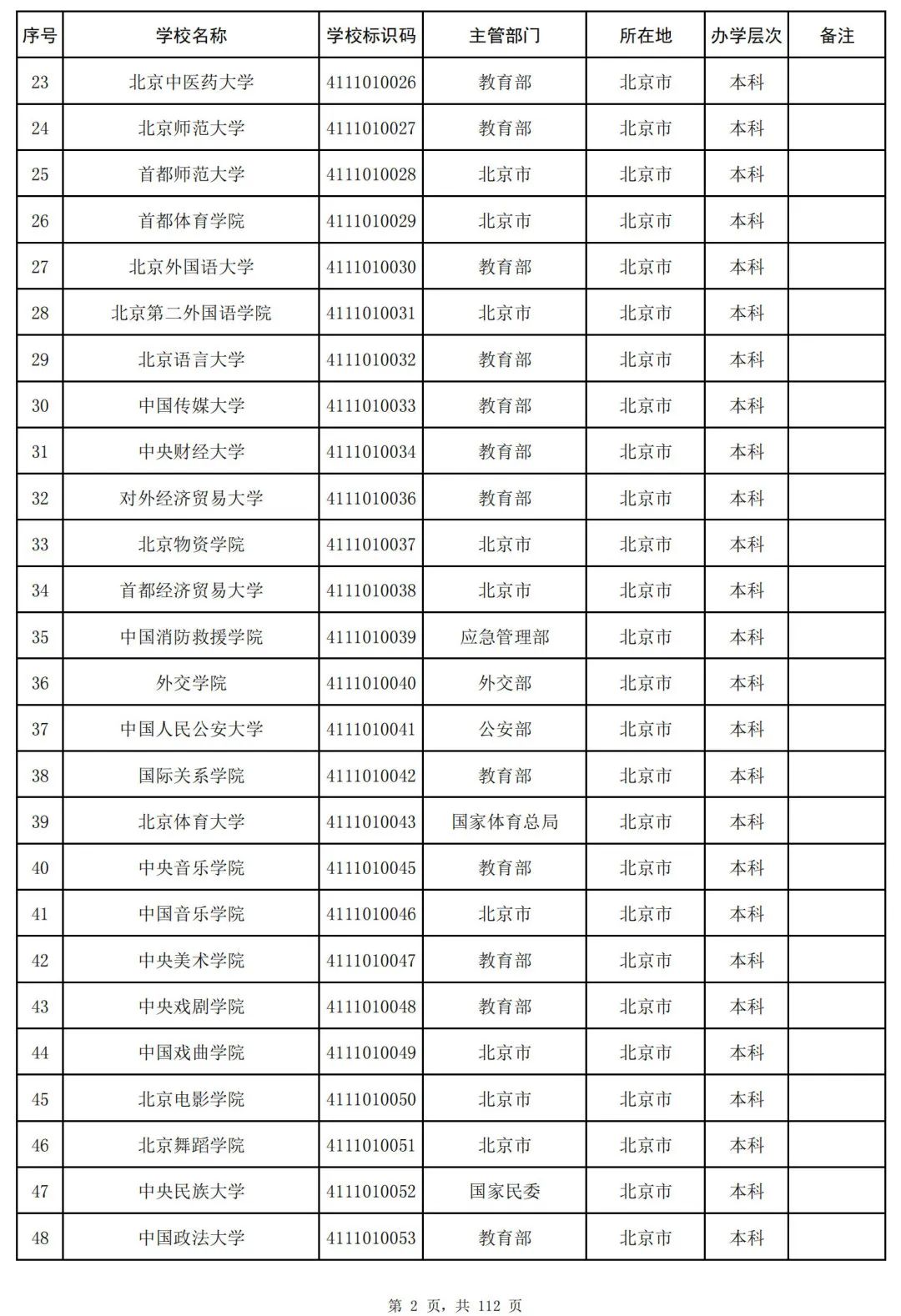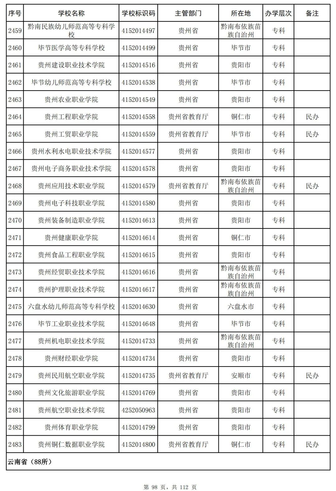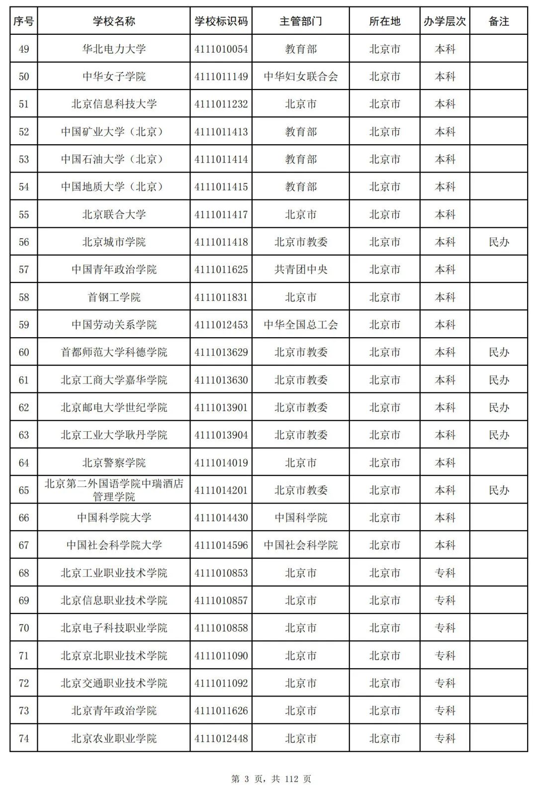 截至2023年6月15日,全国共有3072所高等学校,其中包括2820所普通高等学校和252所成人高等学校。值得注意的是,本名单并未包括港澳台地区的高等学校。