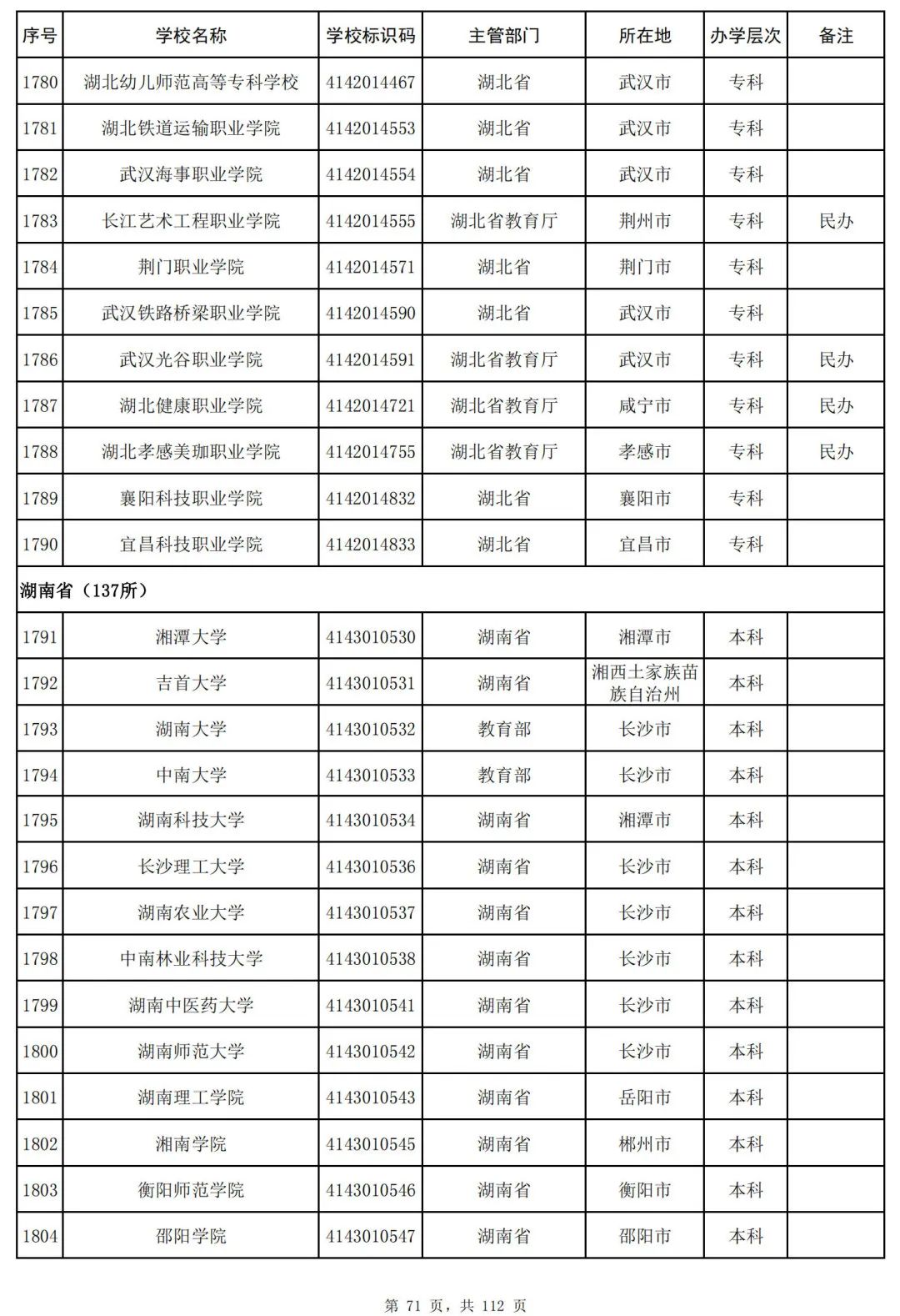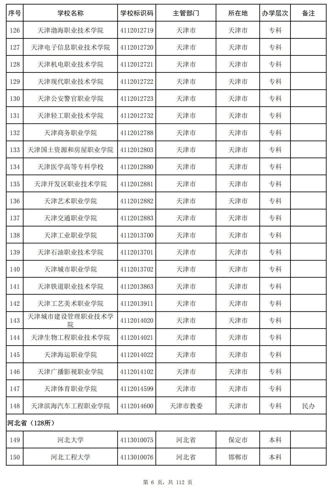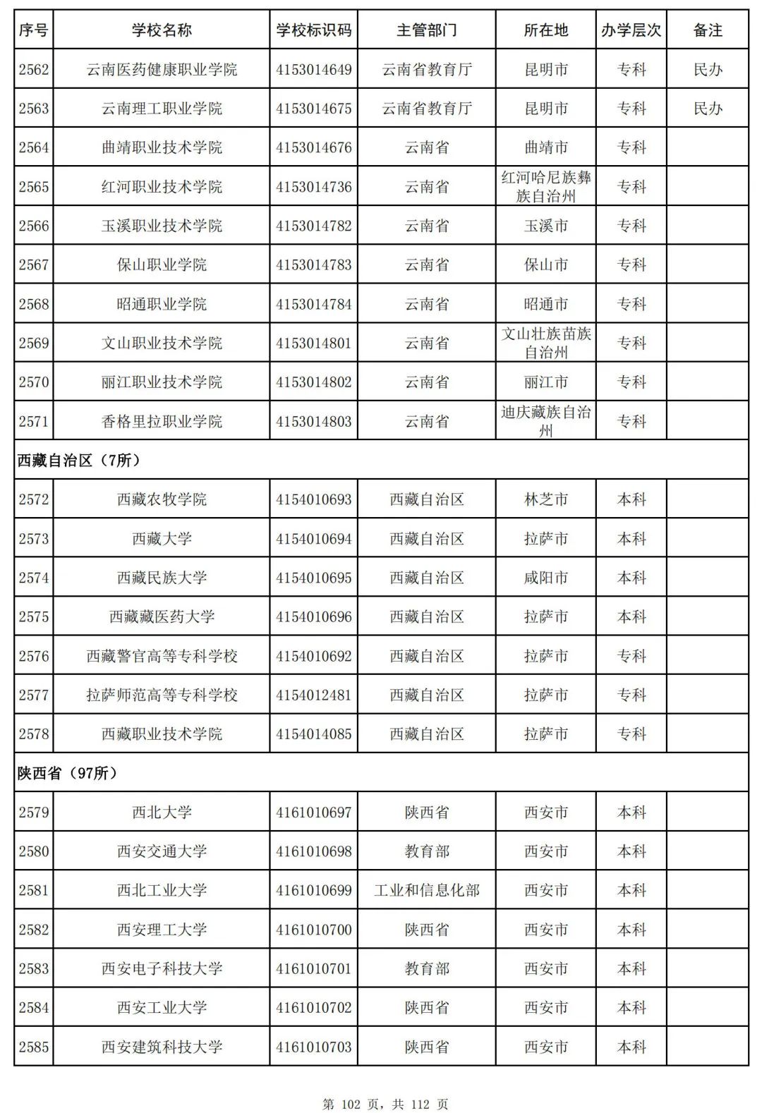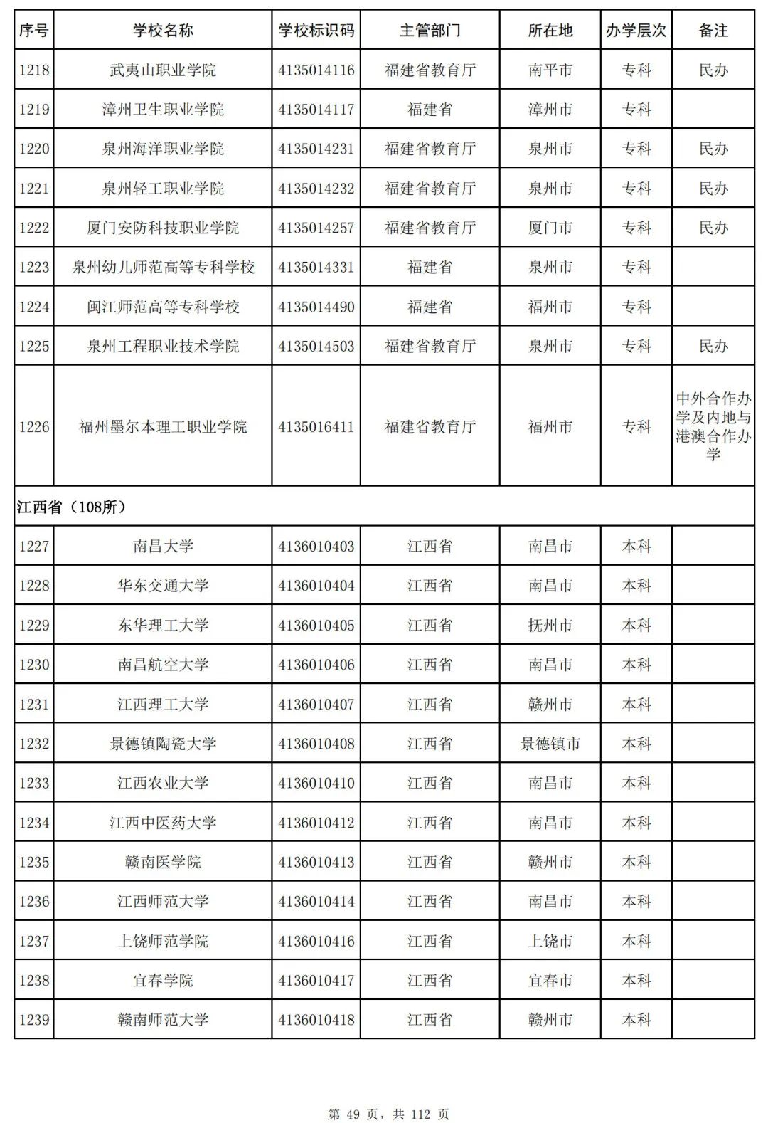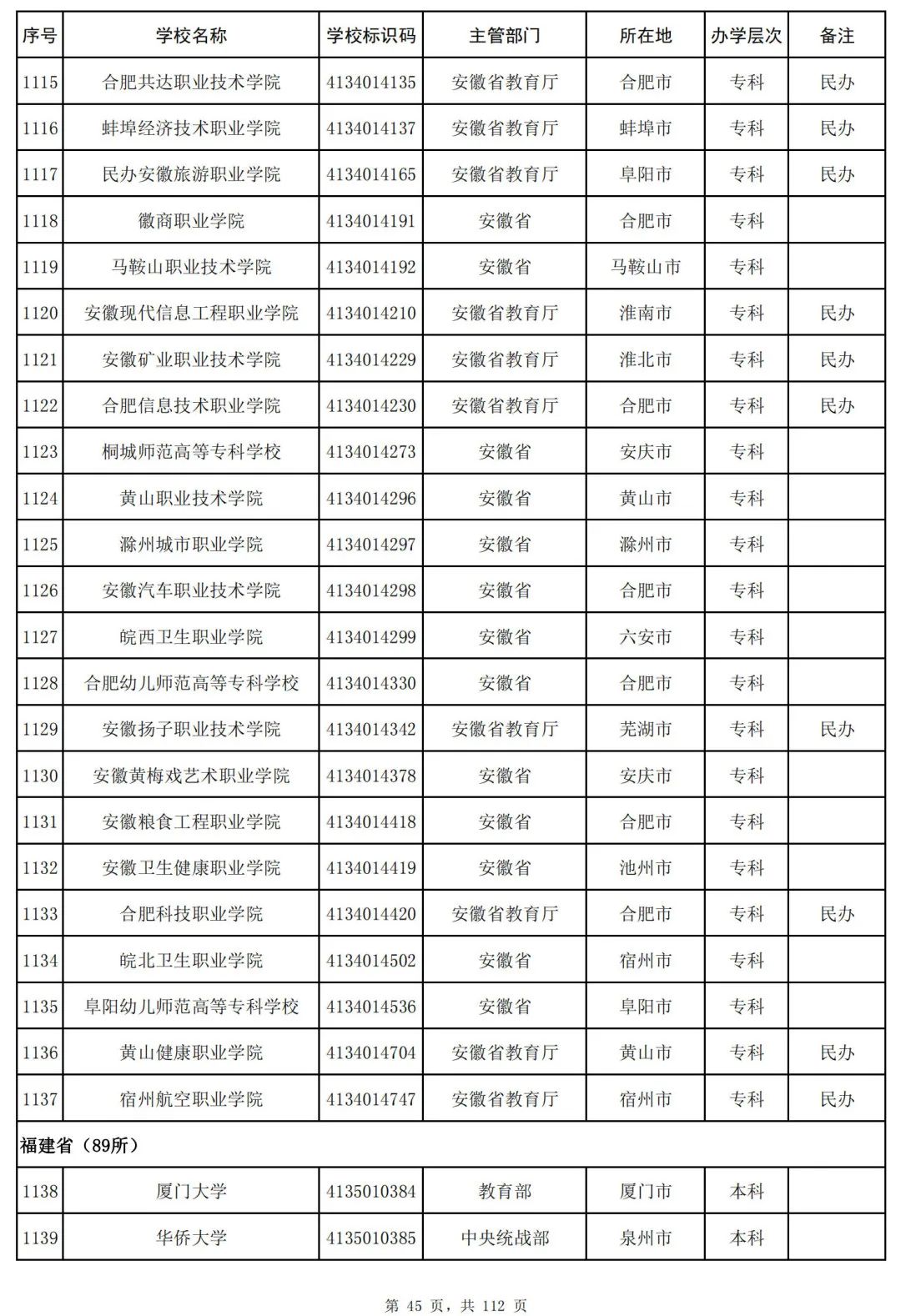 截至2023年6月15日,全国共有3072所高等学校,其中包括2820所普通高等学校和252所成人高等学校。值得注意的是,本名单并未包括港澳台地区的高等学校。