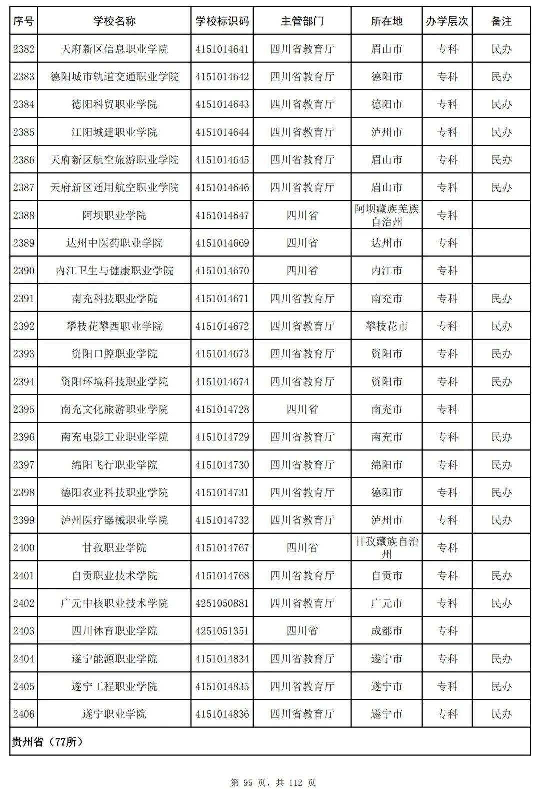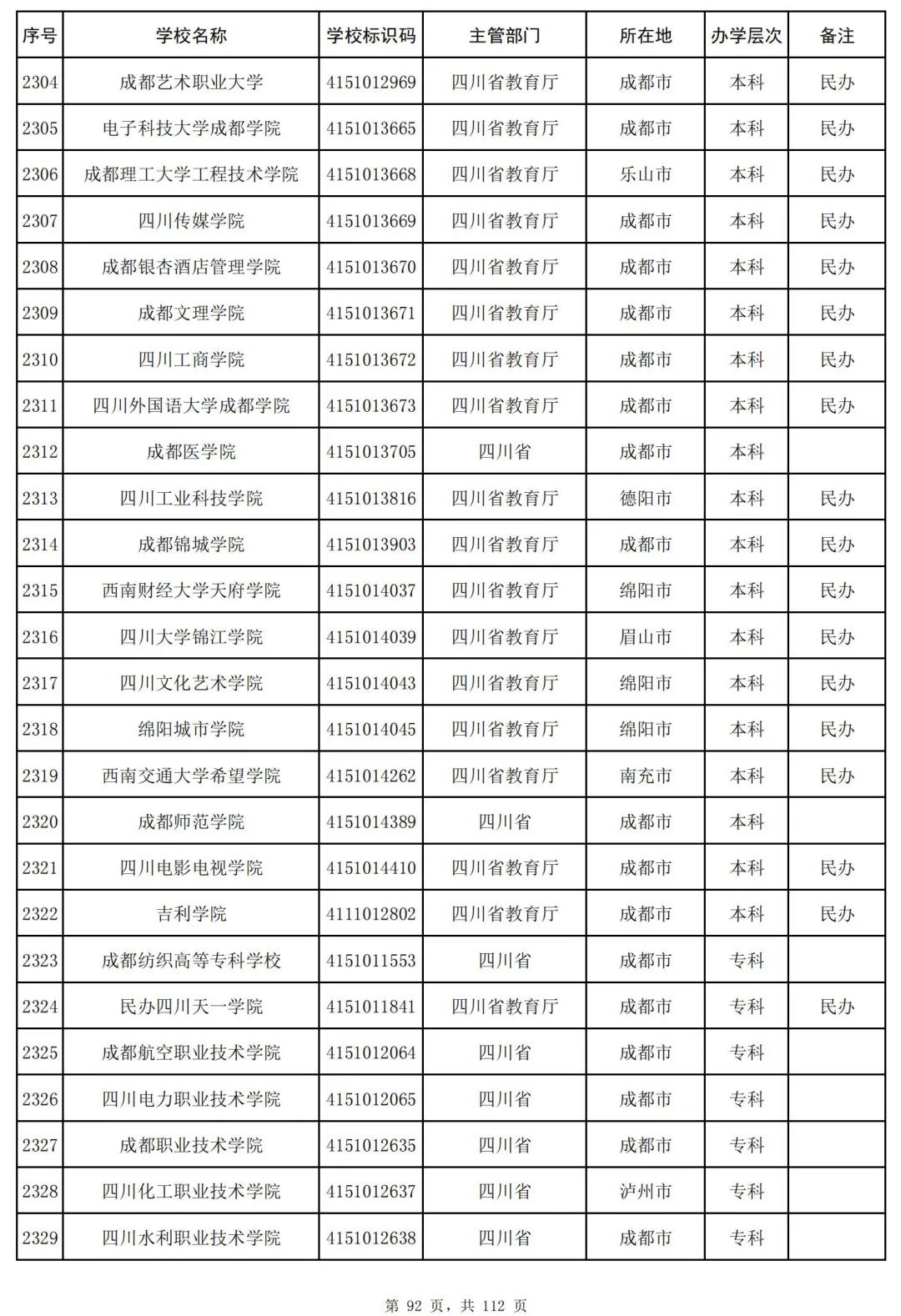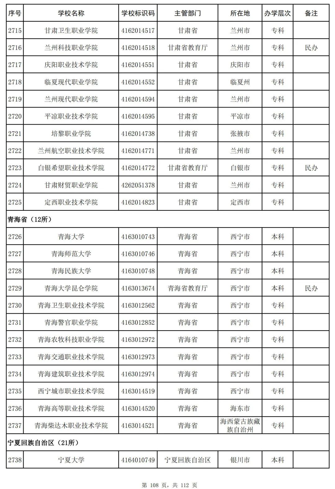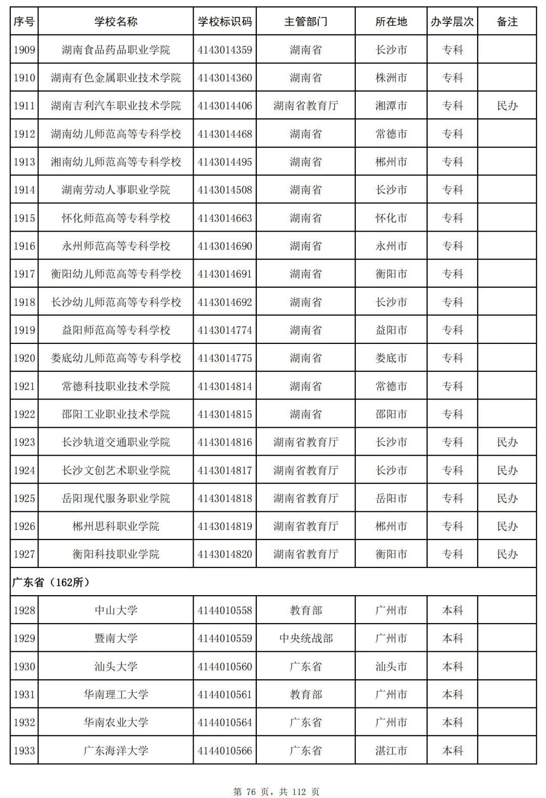 截至2023年6月15日,全国共有3072所高等学校,其中包括2820所普通高等学校和252所成人高等学校。值得注意的是,本名单并未包括港澳台地区的高等学校。