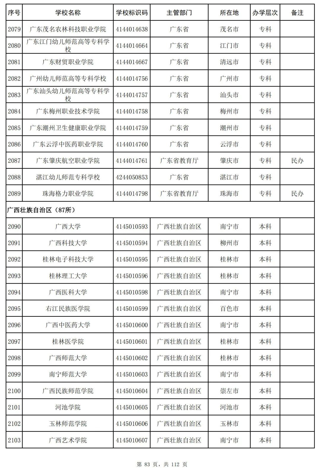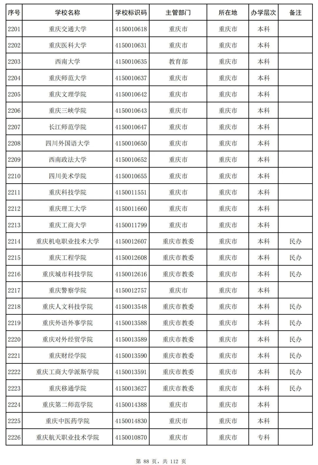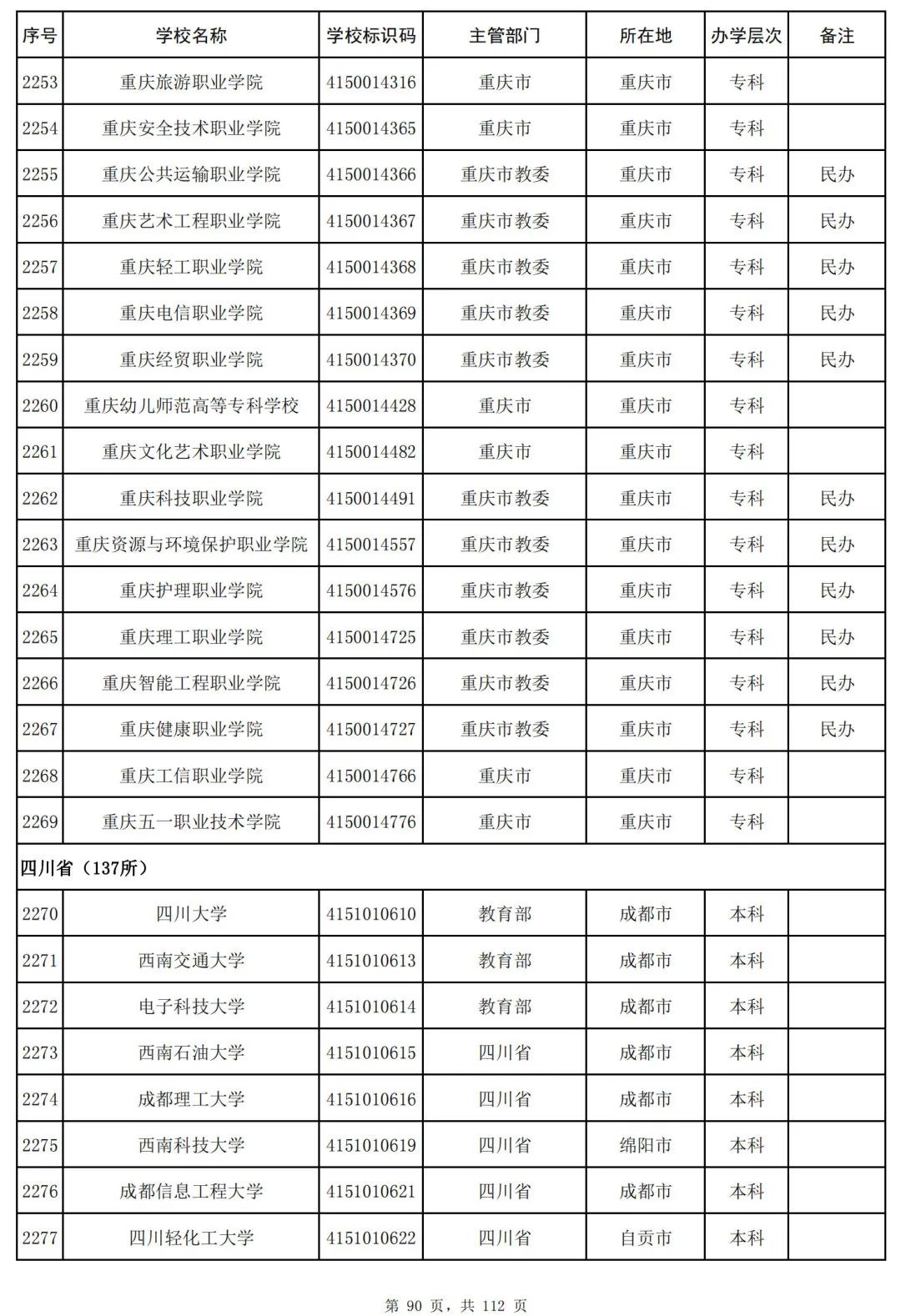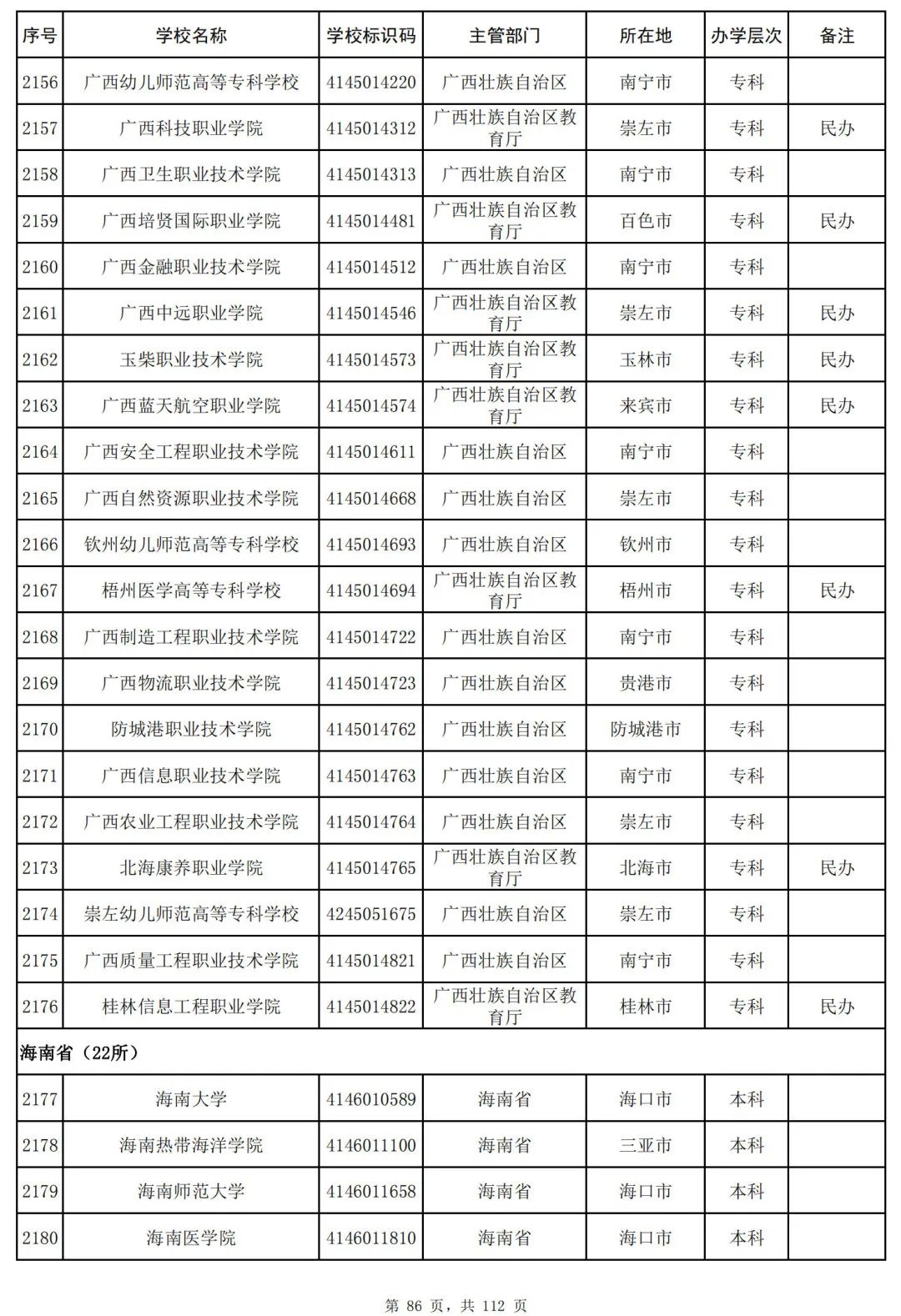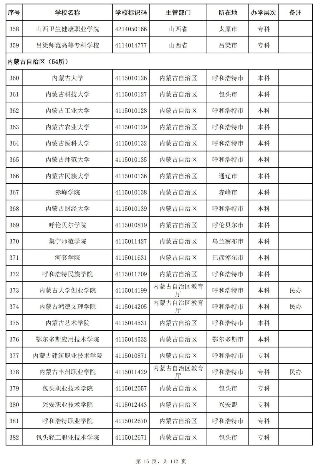 截至2023年6月15日,全国共有3072所高等学校,其中包括2820所普通高等学校和252所成人高等学校。值得注意的是,本名单并未包括港澳台地区的高等学校。