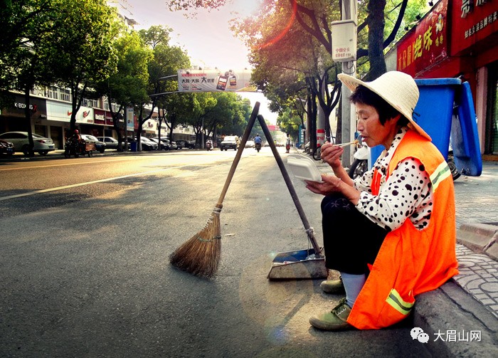 ▼保洁员埋头苦干,路过时干净整洁,抬头回望时和蔼可亲。