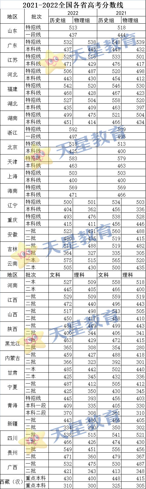 高考分数线是志愿填报的重要参考因素。星哥为您整理了近两年的高考分数线,希望考生和家长能够保存。