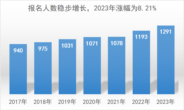 根据多个官方消息,今年全国共有1291万人报名参加高考,相较于2022年增加了98万人,增长幅度较大。在招生人数保持不变的情况下,报名人数的增加将导致分数线相应上涨。