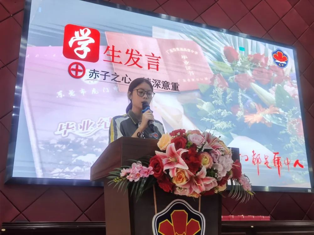 临别之际,高三11班的彭思彤同学作为毕业生代表发言。她感慨地说,三年弹指一挥间,虎中已经陪伴我们度过了1000多个日出与日落。人生的列车也行驶到了新的站台。前路浩浩荡荡,我们满怀憧憬地奔赴下一段旅途,迫切地想要踏上新的征程。曾经期待着毕业那天快点到来,今天真正来到却发现如此不舍。