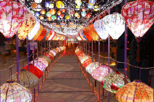 从白天到夜晚,万千盏灯笼齐聚一堂。