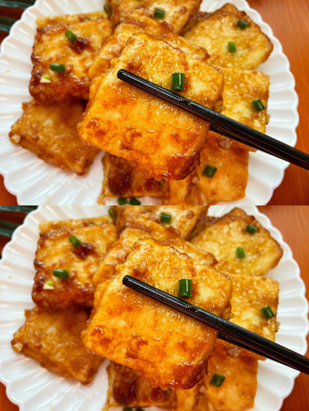 香煎鱼豆腐,油滋滋的模样看起来非常美味。