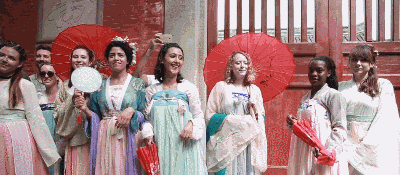 传承中华美德,凡是穿着汉服参加活动的,都将获得一把油纸伞。