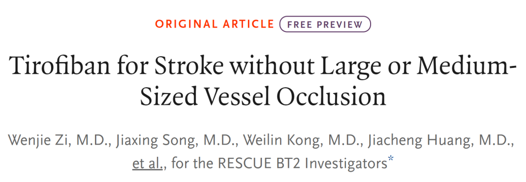 [1]WenjieZi,etal.Tirofiban forStrokewithout LargeorMedium-SizedVesselOcclusion.NEJM.DOI:10.1056/NEJMoa2214299.