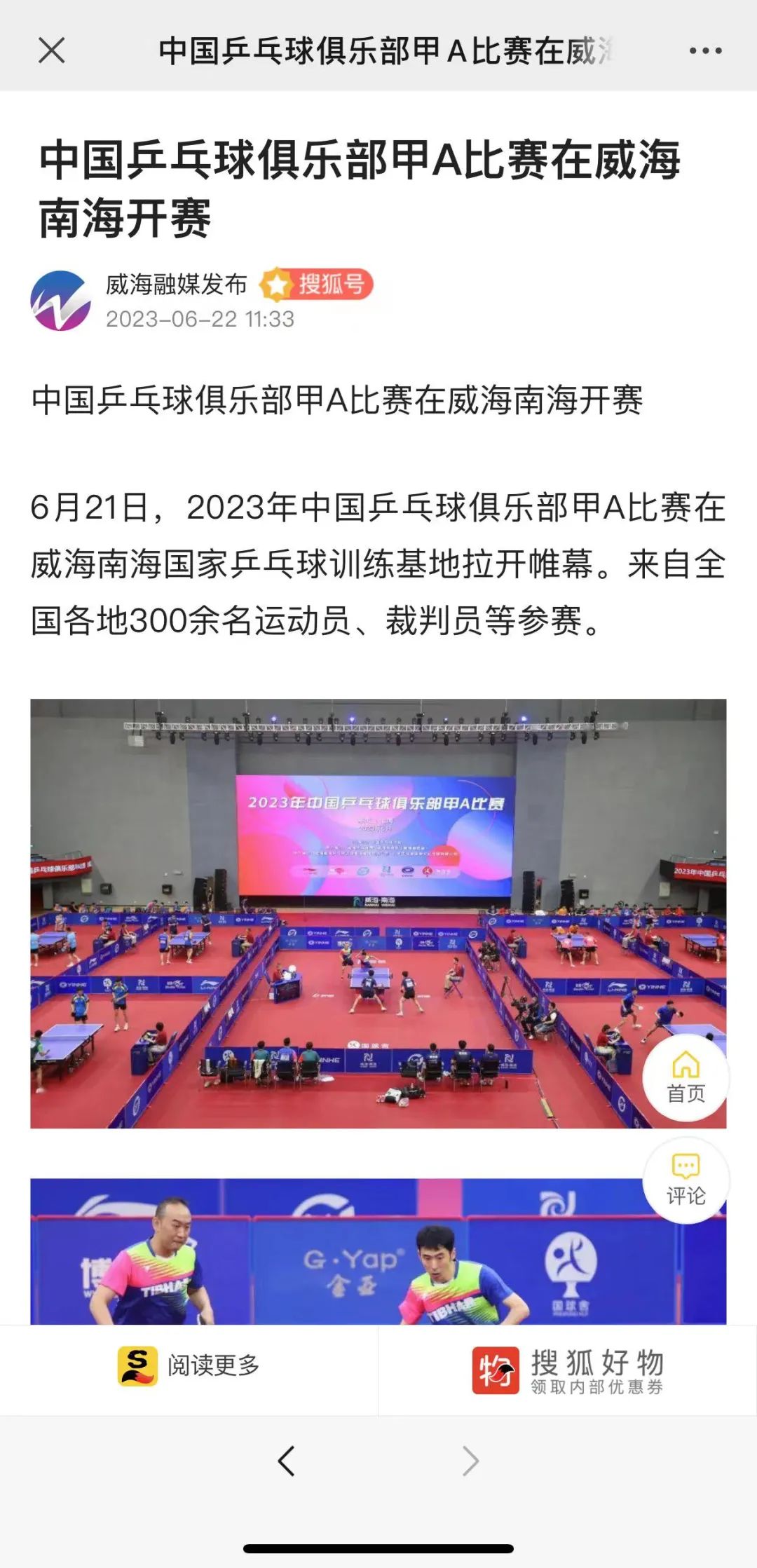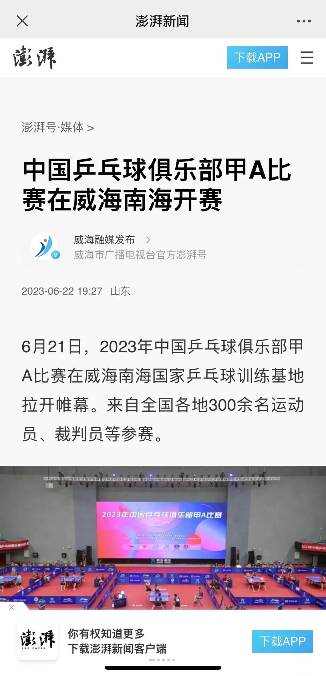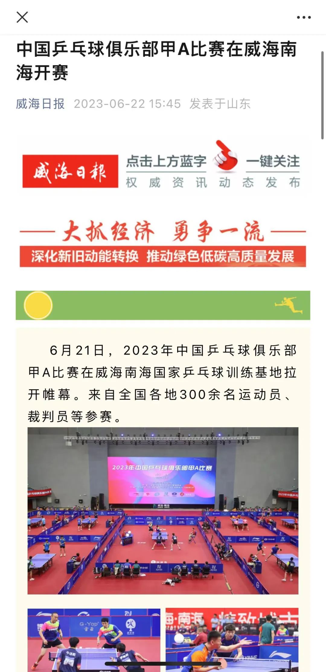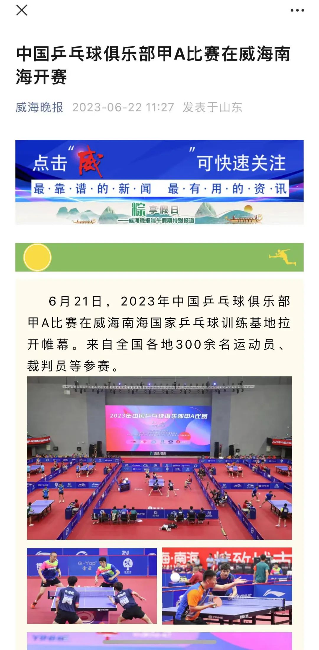 与此同时,在威海南海国家乒乓球训练基地,中国乒乓球俱乐部甲A比赛正在举行。紧张刺激的乒乓球比赛吸引了全国各地的乒乓球爱好者前来南海新区“零距离”观看比赛。