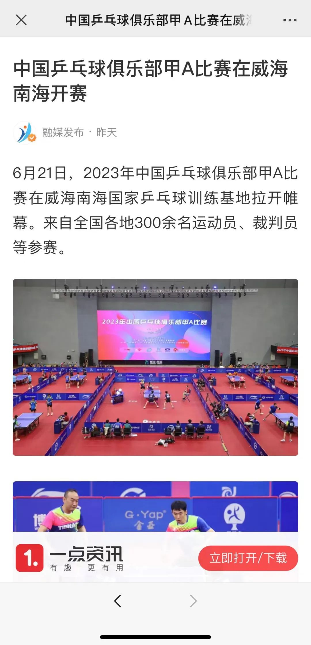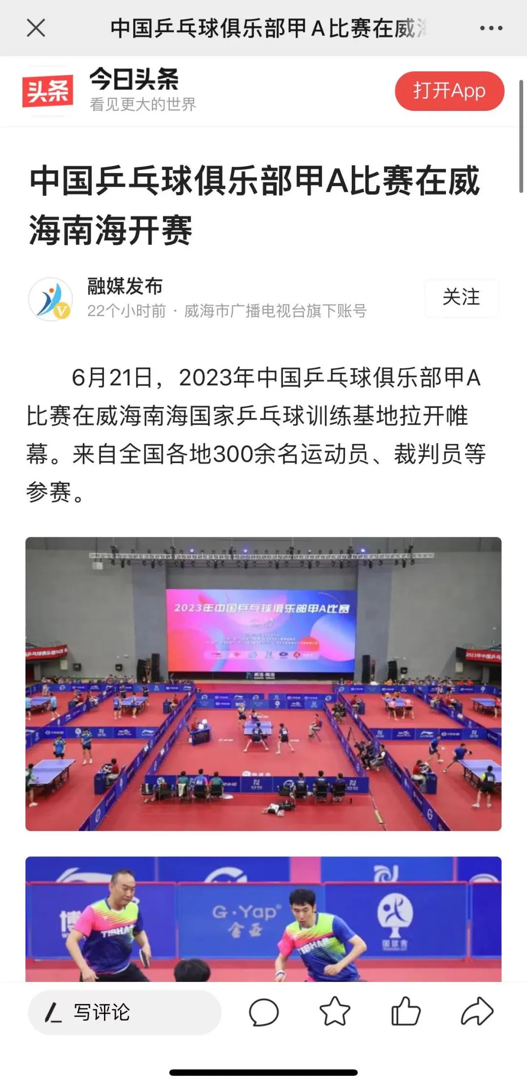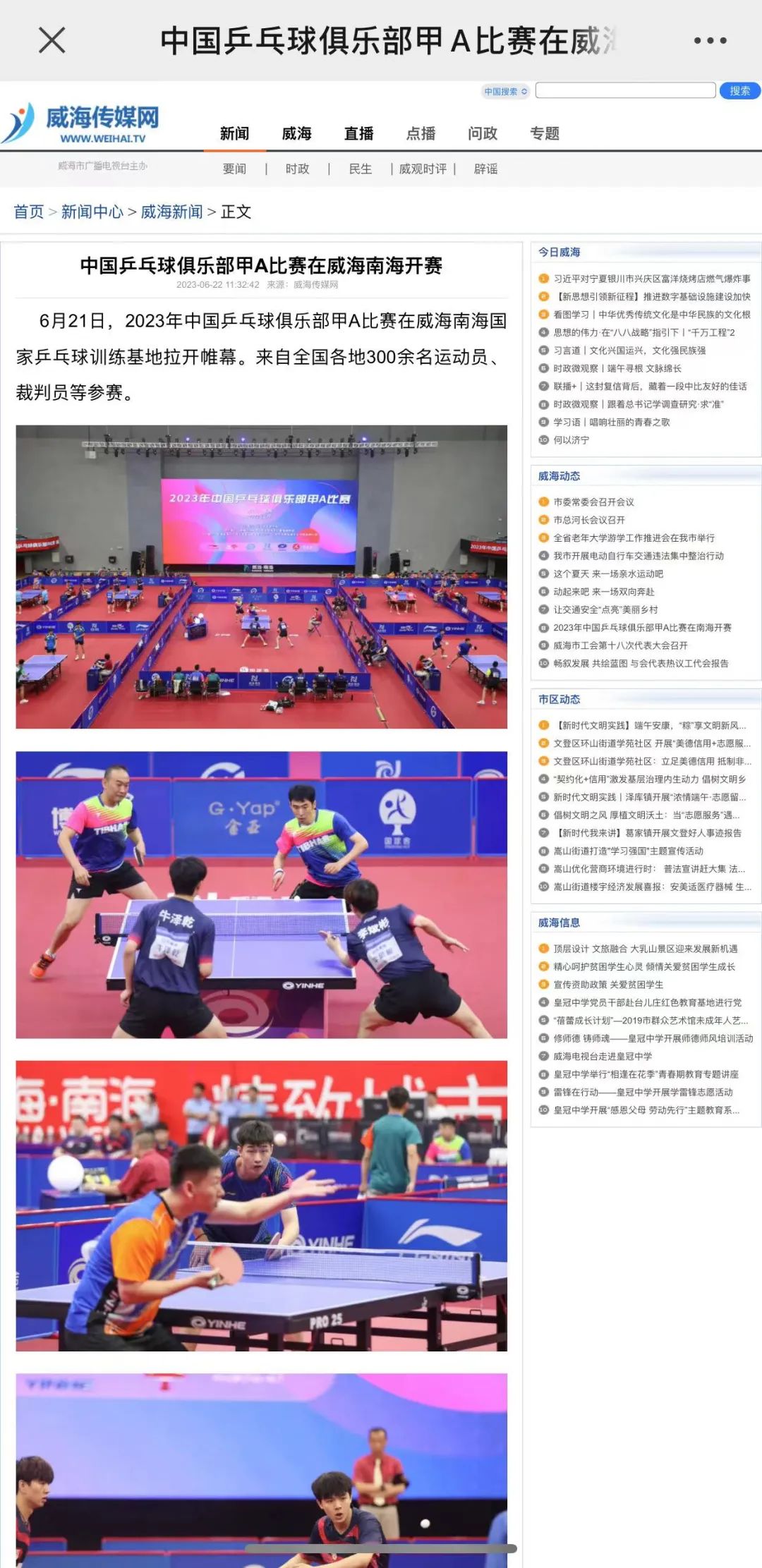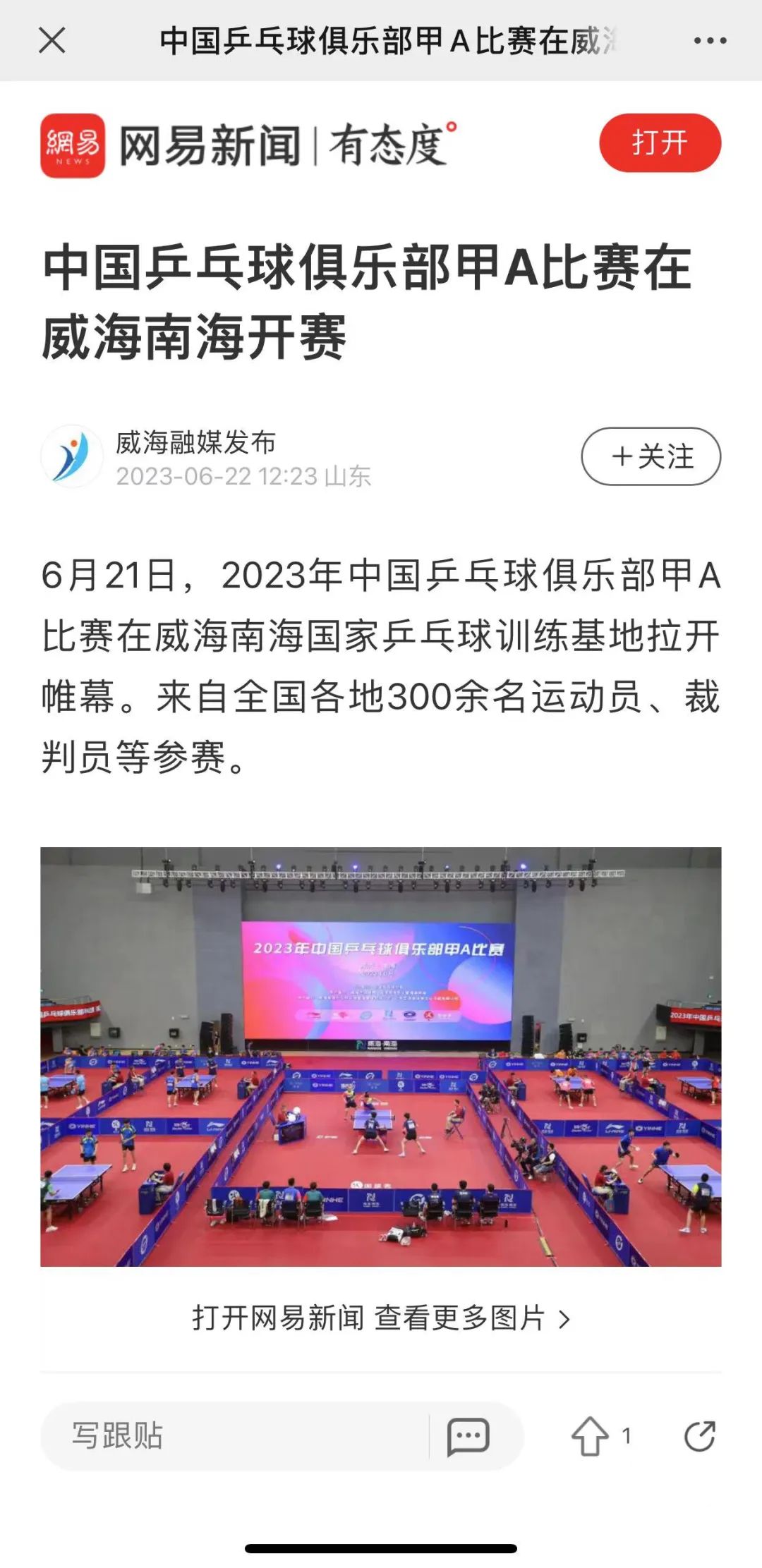 与此同时,在威海南海国家乒乓球训练基地,中国乒乓球俱乐部甲A比赛正在举行。紧张刺激的乒乓球比赛吸引了全国各地的乒乓球爱好者前来南海新区“零距离”观看比赛。