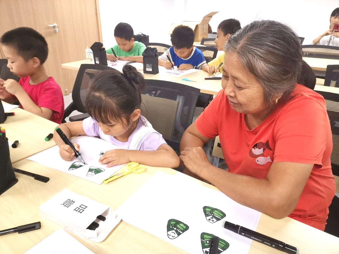在开始进行美术创作之前,志愿者们先让小朋友们通过视频的形式了解端午节的各种由来传说和传统习俗,以便为他们接下来进行创作提供一些素材。接着,李凤屏向小朋友们讲解了本次活动中他们将要完成的作品“粽子划龙舟”,并逐步地教授小朋友们如何绘画、裁剪出一些生动可爱的粽子和龙舟。