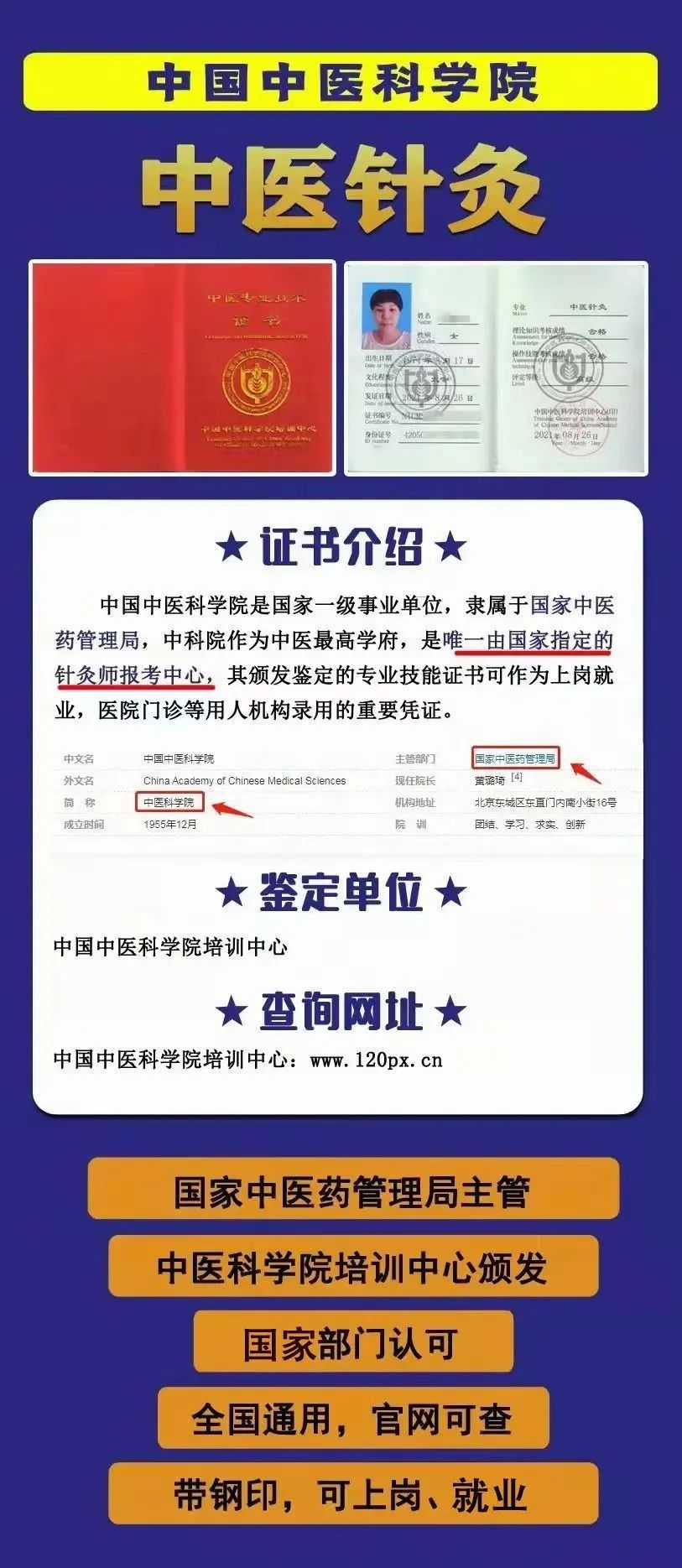 经过考证,中科院培训中心颁发的中医康复理疗师证、中医针灸师证、小儿推拿证和催乳师证等都是有效的。
