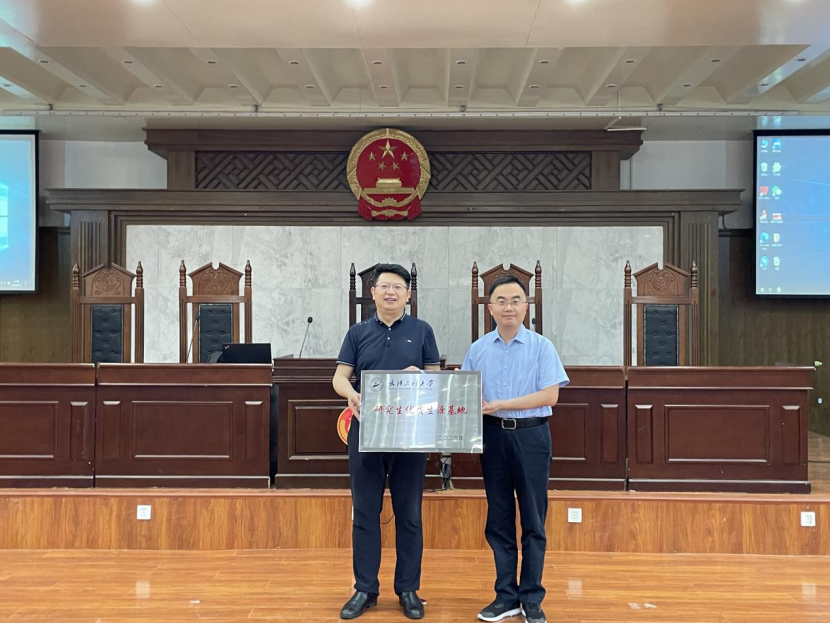 首先,武汉工程大学法商学院与我院举行了研究生优质生源基地揭牌仪式,并进行了合影留念。