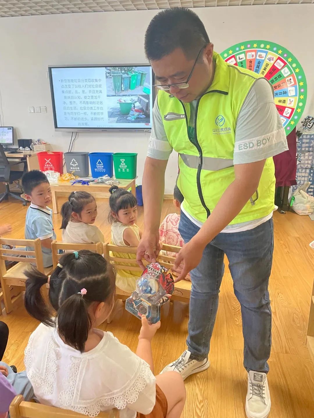 “亲爱的小朋友们,你们知道吗?地球是我们共同的家园,我们依靠地球妈妈给予的丰富资源。在课堂中,社区环保志愿者根据幼儿年龄特点开展垃圾分类主题教学,通过动画视频、精美图片、互动游戏等多种形式,介绍垃圾分类的标志、可回收垃圾、厨余垃圾、有害垃圾和其他垃圾的品种以及如何进行垃圾分类。这些方法帮助孩子们了解垃圾分类的重要作用,并养成垃圾分类的好习惯。