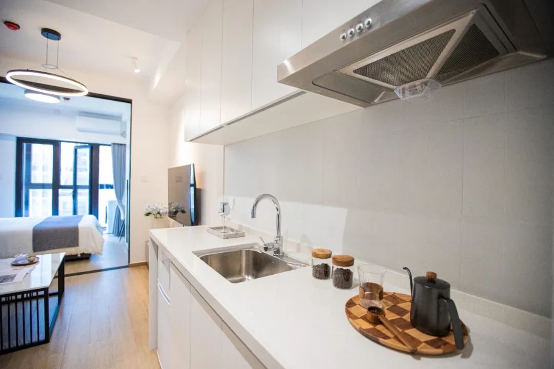 行政公寓以灰色为主色调,精心打磨出低奢品质。简约雅致的配色与实木家私相搭配,营造出平和舒缓的自然空间。客餐厅一体,全明厨房,天然气入户等配置在长租公寓市场中极为稀缺。其颜值与品质兼备,同时充分考虑了小家庭客户的日常生活需求。