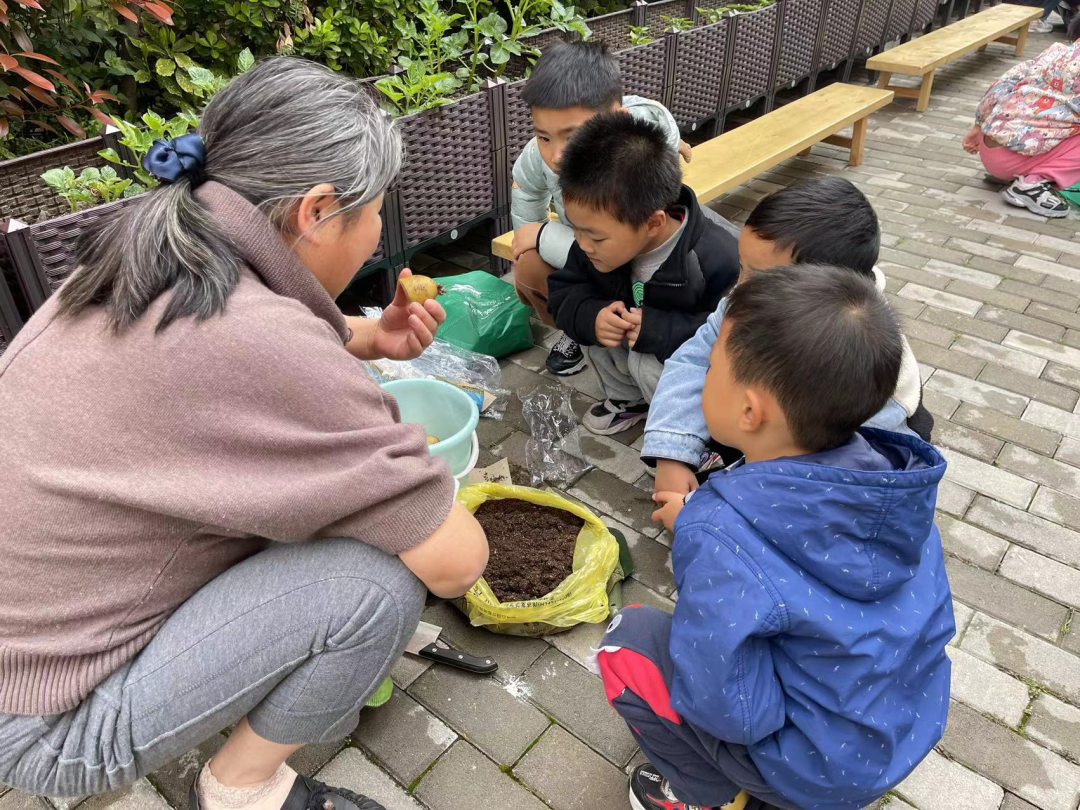 清明节后,垃圾各回各家项目中的废弃物再利用活动在亭林幼儿园有序开展。这一次,我们根据江南地区的植物种植特点,教孩子们进行春季栽培。活动中,我们利用了以下废弃物:一、孩子们收集了平时在班级里喝完的水桶;二、对空水桶进行改造、美化,使其成为种植花盆,有利于植物生长;三、种植的种子是菜场收集的发芽不能食用的土豆和红薯;四、种植用的泥土是2022年冬天用厨余垃圾和落叶制作的堆肥土。