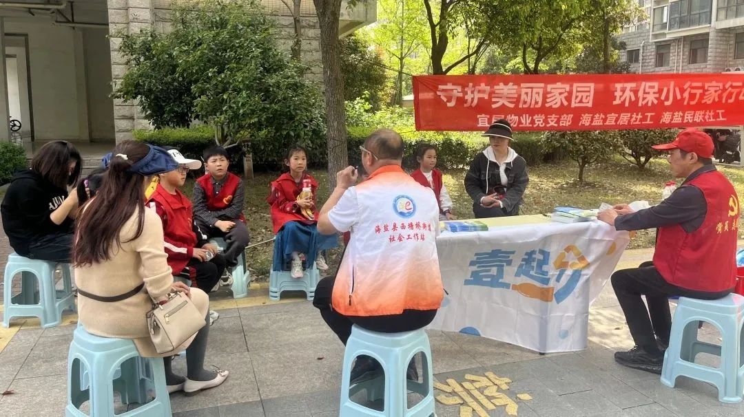 在2023年4月,该项目联合海盐县民联社工服务中心开展了3次弯腰捡拾活动。这些活动邀请了辖区内的亲子家庭,红领巾志愿者,宜居物业党支部和社区参与。通过这些活动,增强了居民们的环保意识,引导他们树立“尊重自然、顺应自然、保护自然”的生态文明意识,并持续推进青少年儿童呵护地球、了解垃圾分类、从源头做起,减少资源浪费和环境污染,为美丽家乡贡献自己的一份力量。