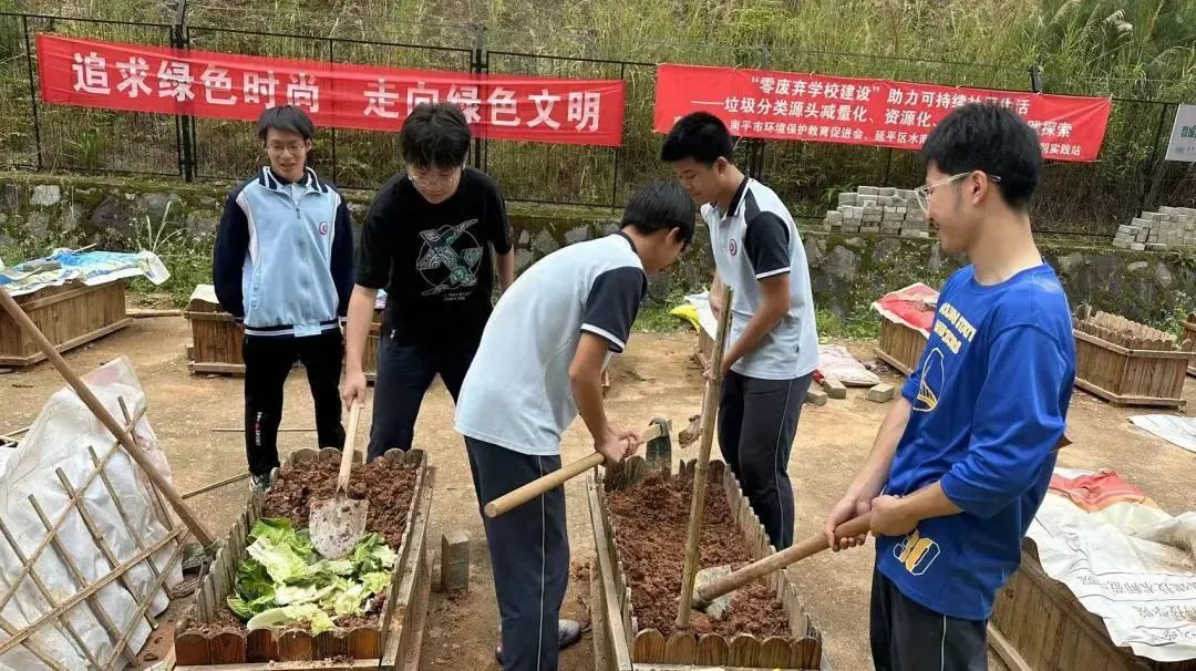 4月28日,南平一中举办了一系列零废弃学校建设活动。在活动中,同学们学习了环保酵素的制作方法,了解了厨房里公益的重要性。这样,同学们就有了另一种垃圾分类源头减量的方法。同时,另一组同学则开始建造蚯蚓塔。