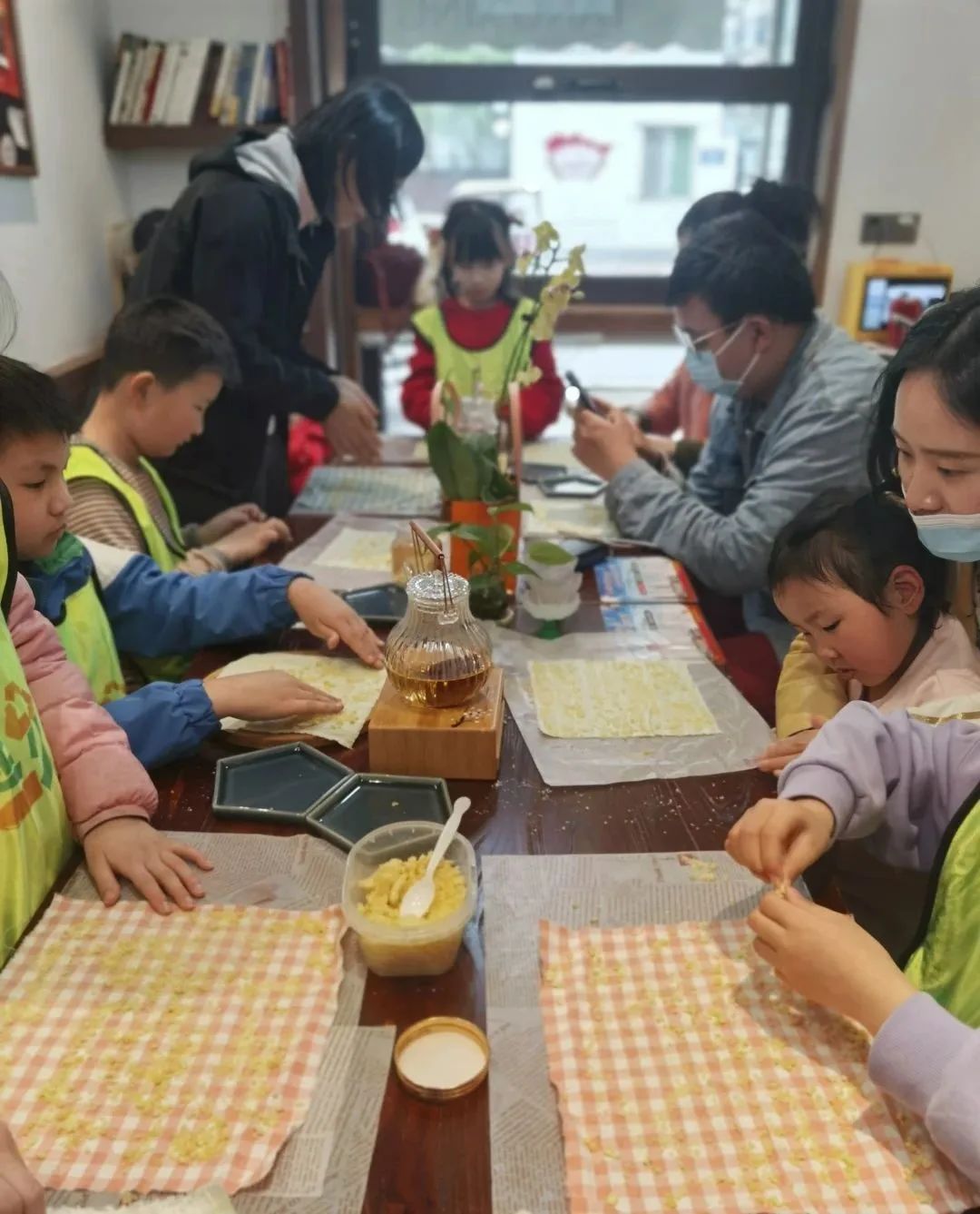 4月5日清明节下午,我们举办了一场小而美的“在糖星汇爱烘焙坊展开。6组亲子家庭共计12人参与学习如何手作一枚青团,了解清明节传统习俗,品鉴”零废弃风格的下午茶活动。在活动中,大家一起探讨塑料污染问题,拒绝使用保鲜膜和塑封包装,并亲手制作蜂蜡膜。当用自制的蜂蜡膜包裹着自制的青团时,每个人都被这份美好的环保体验所打动。