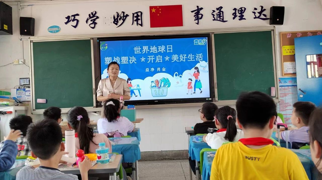 为迎接第54个“世界地球日”,益净志愿服务中心肖金老师于2023年4月20日上午为三角湖小学四年级7班的孩子们带来了一节主题为“塑战塑决开启美好生活”的环保实践课堂。在课堂上,肖老师通过PPT生动地讲解了塑料的起源、产生、好处和危害、分类知识以及现状等内容,并引导孩子们思考如何在生活中减少塑料使用。这不仅是件可行的小事,也是每个人都应承担的环保大事。后生可畏,让我们带着孩子们一起“塑战塑决”美好生活吧!