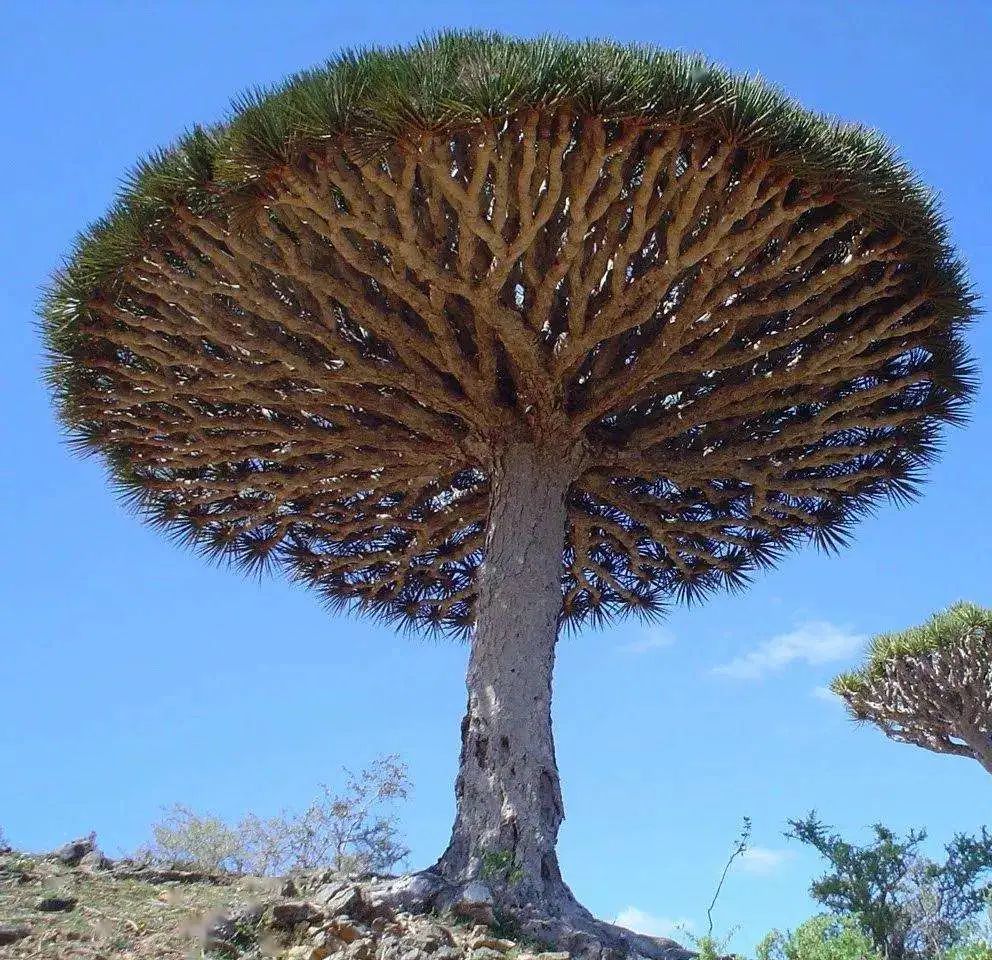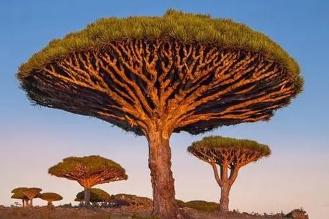 有一种树木生长缓慢,耐干旱,喜光。它的树干粗短,树皮灰白,纵列。它的叶子茂盛。据说,在古代,巨龙和大象争斗,巨龙的血洒在地上,后来从土壤中生出来的便是龙血树。当龙血树受伤时,它会流出像鲜血的树汁。因此,人们称这种流血树为“龙血树”。