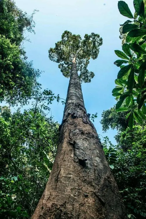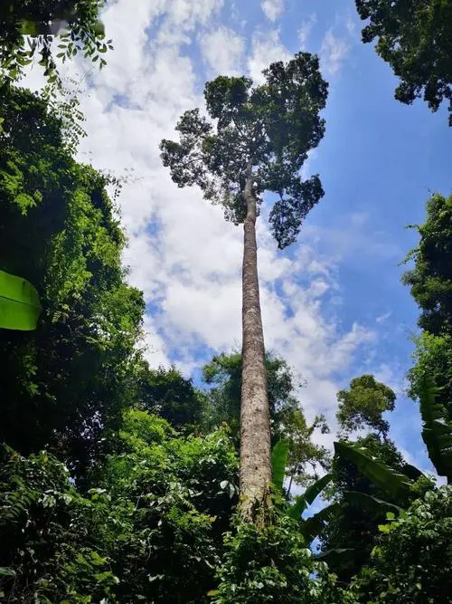 望天树,又名擎天树,是一种龙脑香料的树木,生长在云南西双版纳勐腊。它是国家一级重点保护野生植物,高达七八十米,鹤立鸡群,巨大的树冠高举于热带雨林林冠层上。它不仅在西双版纳,而且在东南亚热带地区都是最高大的树木之一。因此,称其为热带雨林中的“巨人”,一点也不过分。