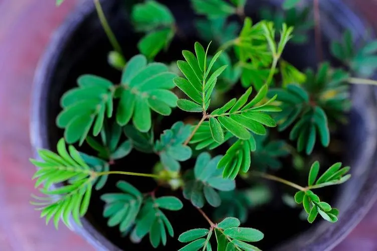 含羞草,又名怕丑草,原产于热带美洲。它的叶子对热和光有反应,当受到外力触碰时,会立即闭合。因此,得名含羞草。