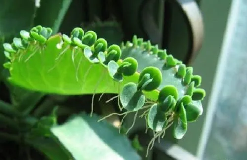 有人曾做过一个试验,用一根木棍将它打得粉碎,但不到两个月,那些被打落在土里的碎屑,以及被打碎的叶梢上仅有的几颗芝麻大小的芽瓣儿,居然落地生根,长出了鲜嫩的新芽。