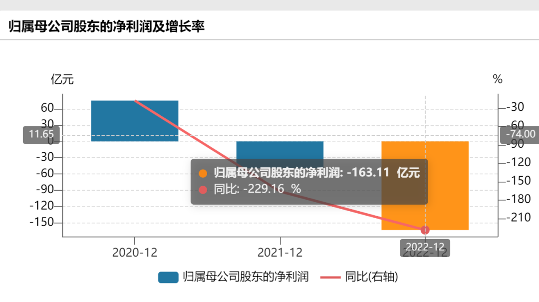 在2022年,荣盛的归母净亏损达到了163.11亿元。