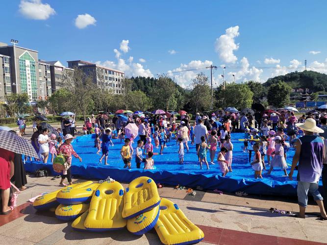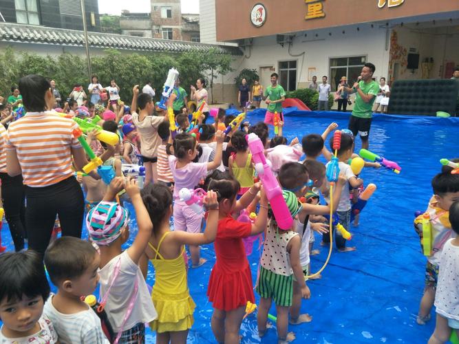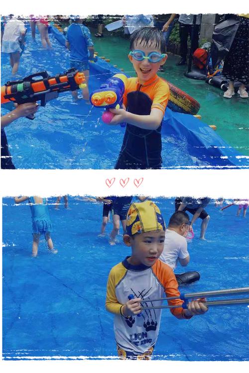 当水柱喷向天空,水花四溅,幼儿园变成了欢乐的海洋。在老师和小朋友的欢呼声中,一场水仗打响了。水枪“火力全开”,尖叫声此起彼伏,幼儿园变成了“战场”。孩子们在水池中奔跑、玩耍、躲闪,现场气氛热烈高涨。