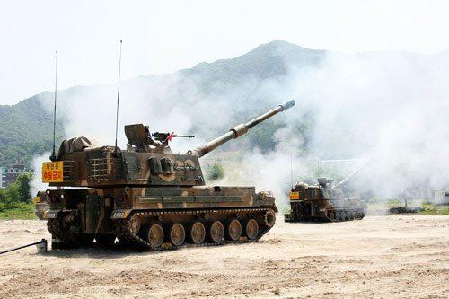 这是2012年6月19日,在韩国举行的韩美军事演习媒体开放日上拍摄的参演K-9自行火炮。图片由新华社/路透提供。