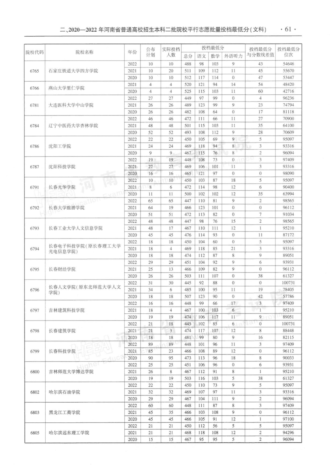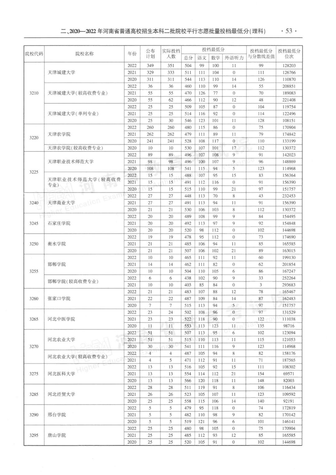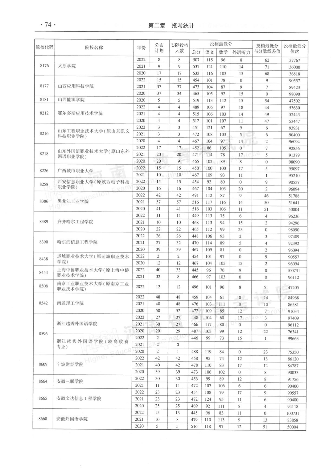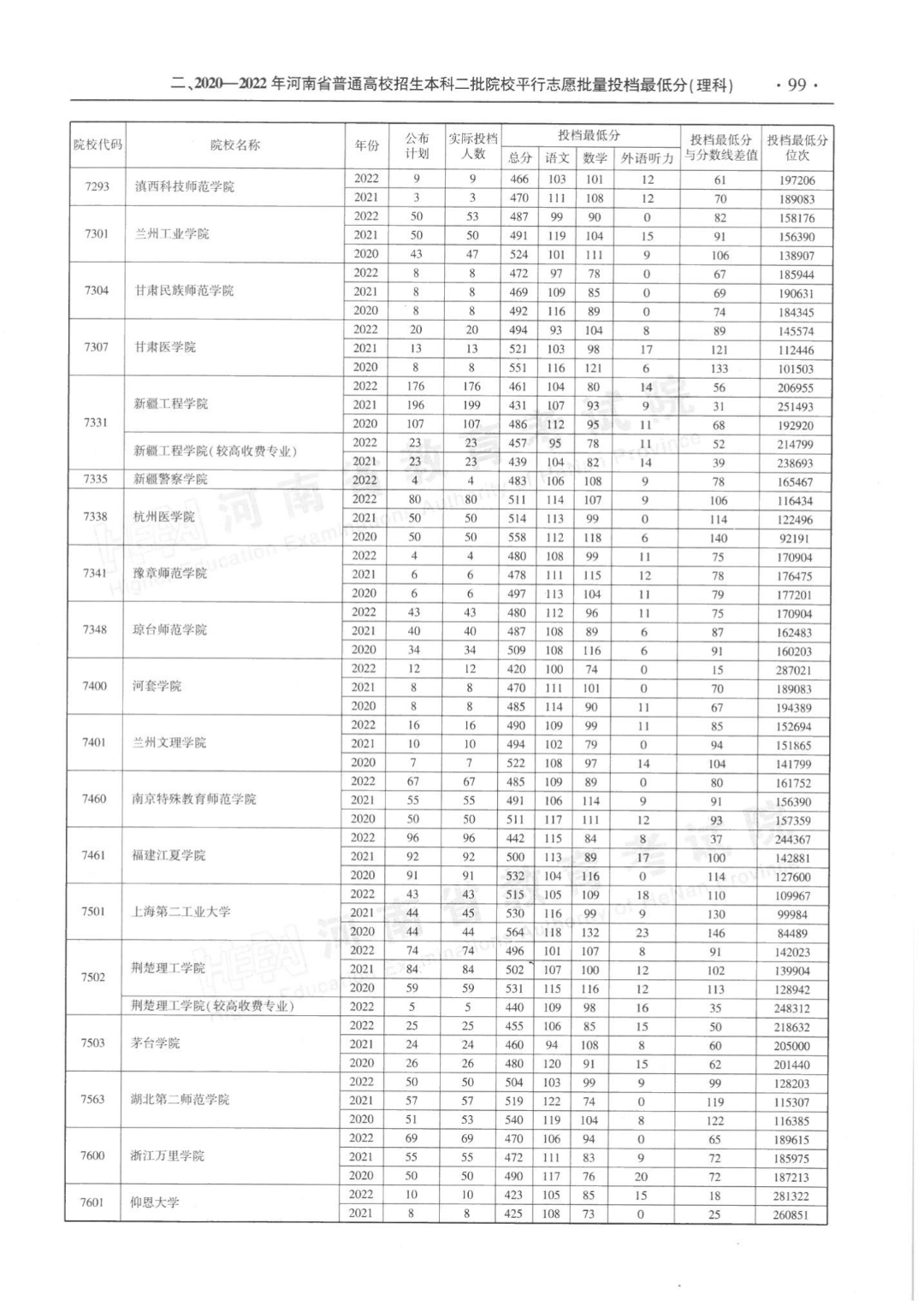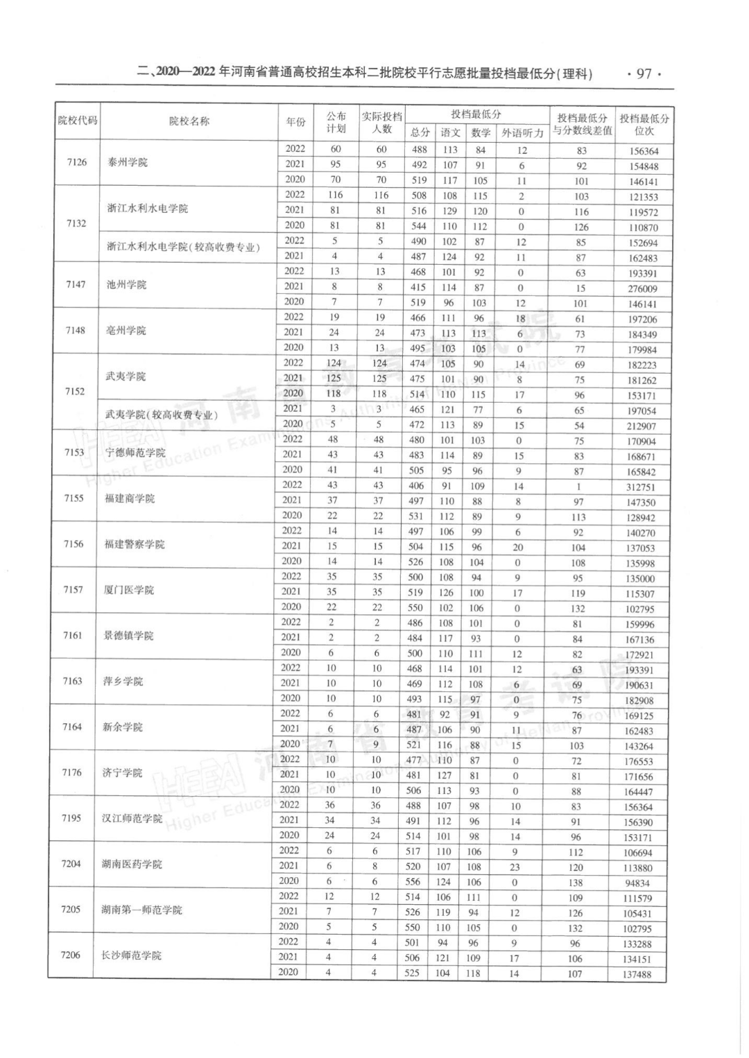 我省近三年来,本科二批平行投档的最低分数线如下。
