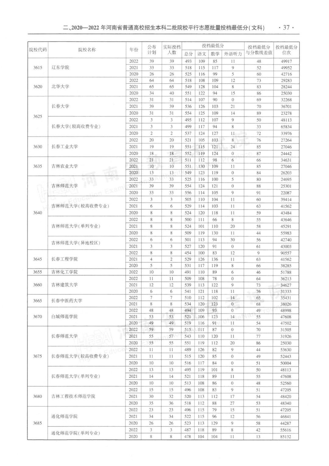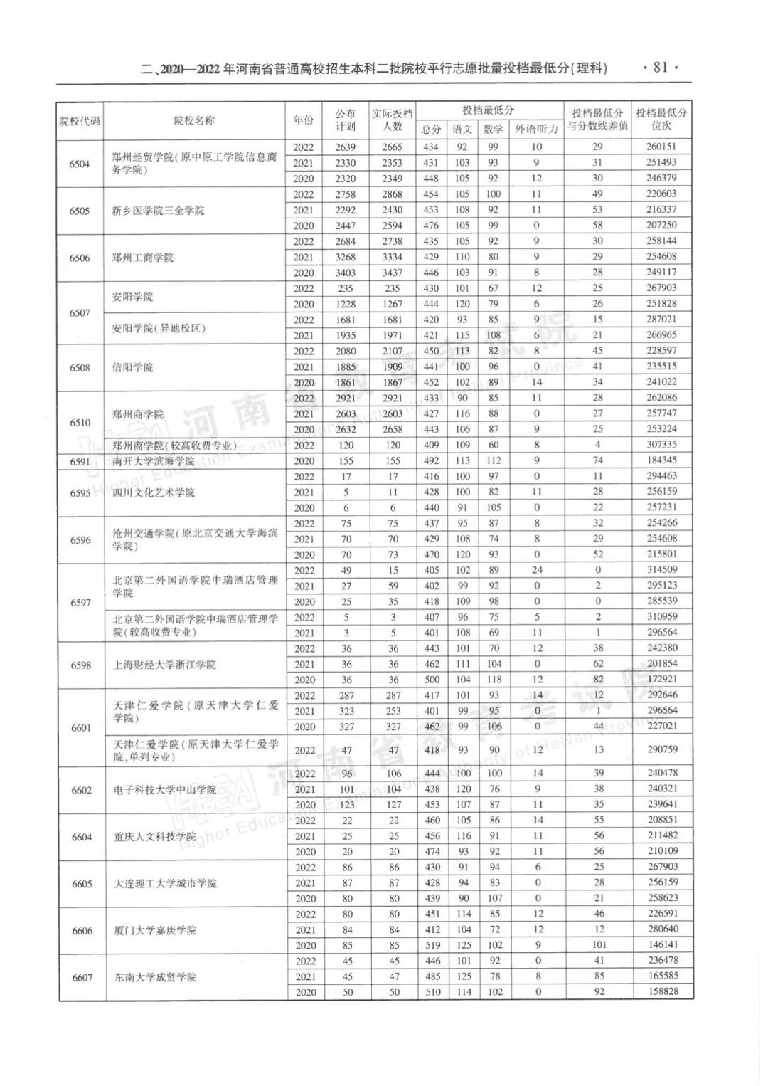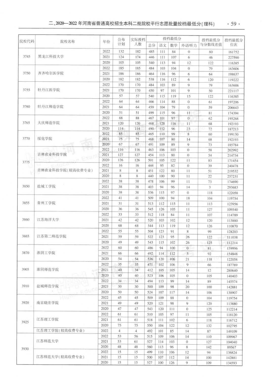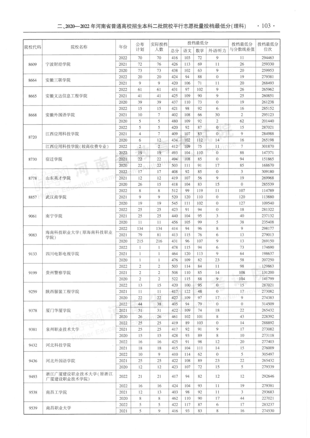 我省近三年来,本科二批平行投档的最低分数线如下。