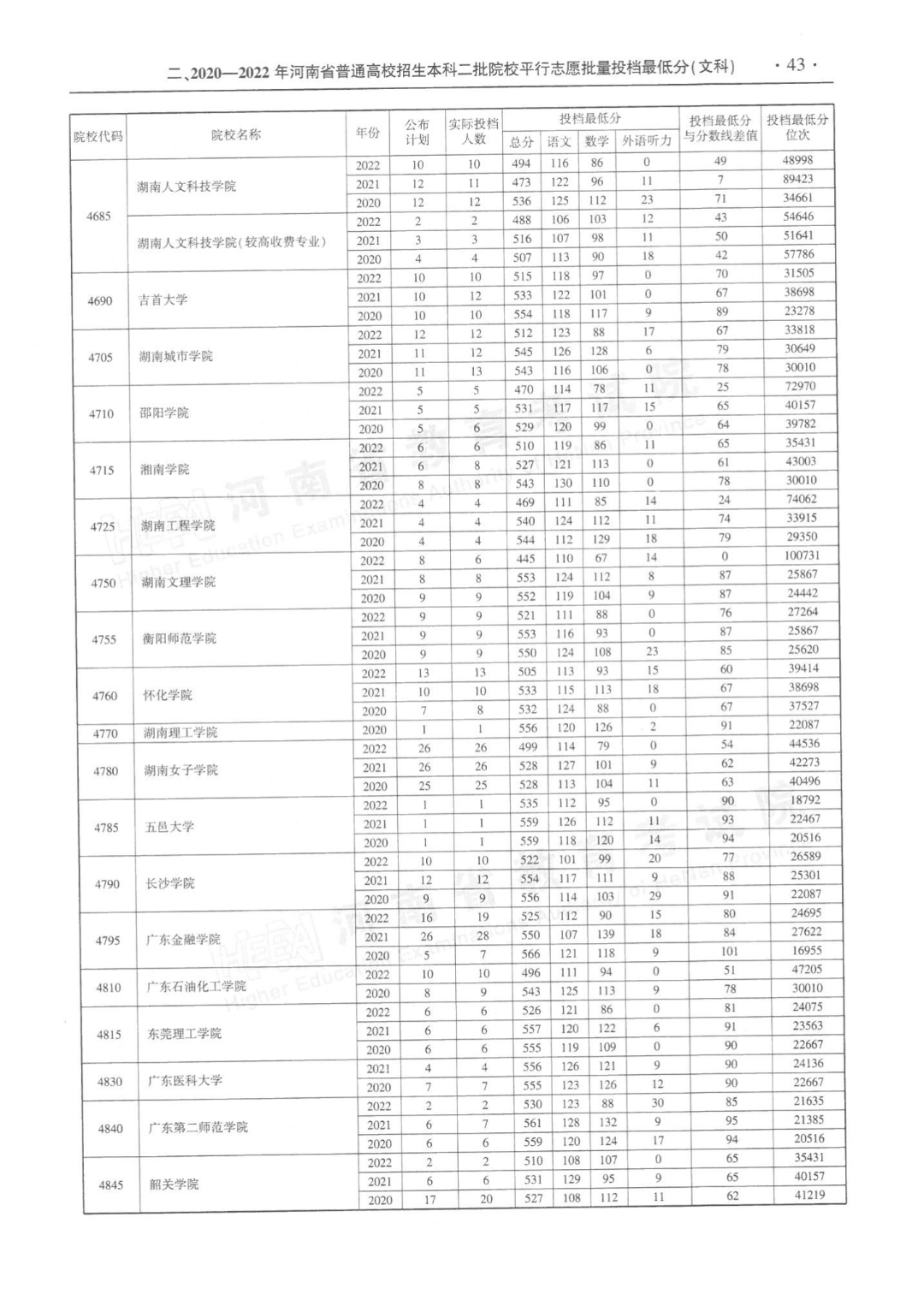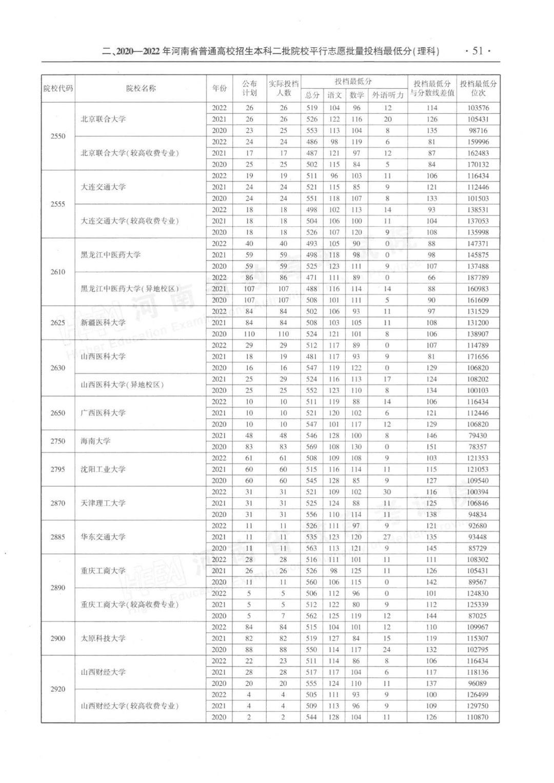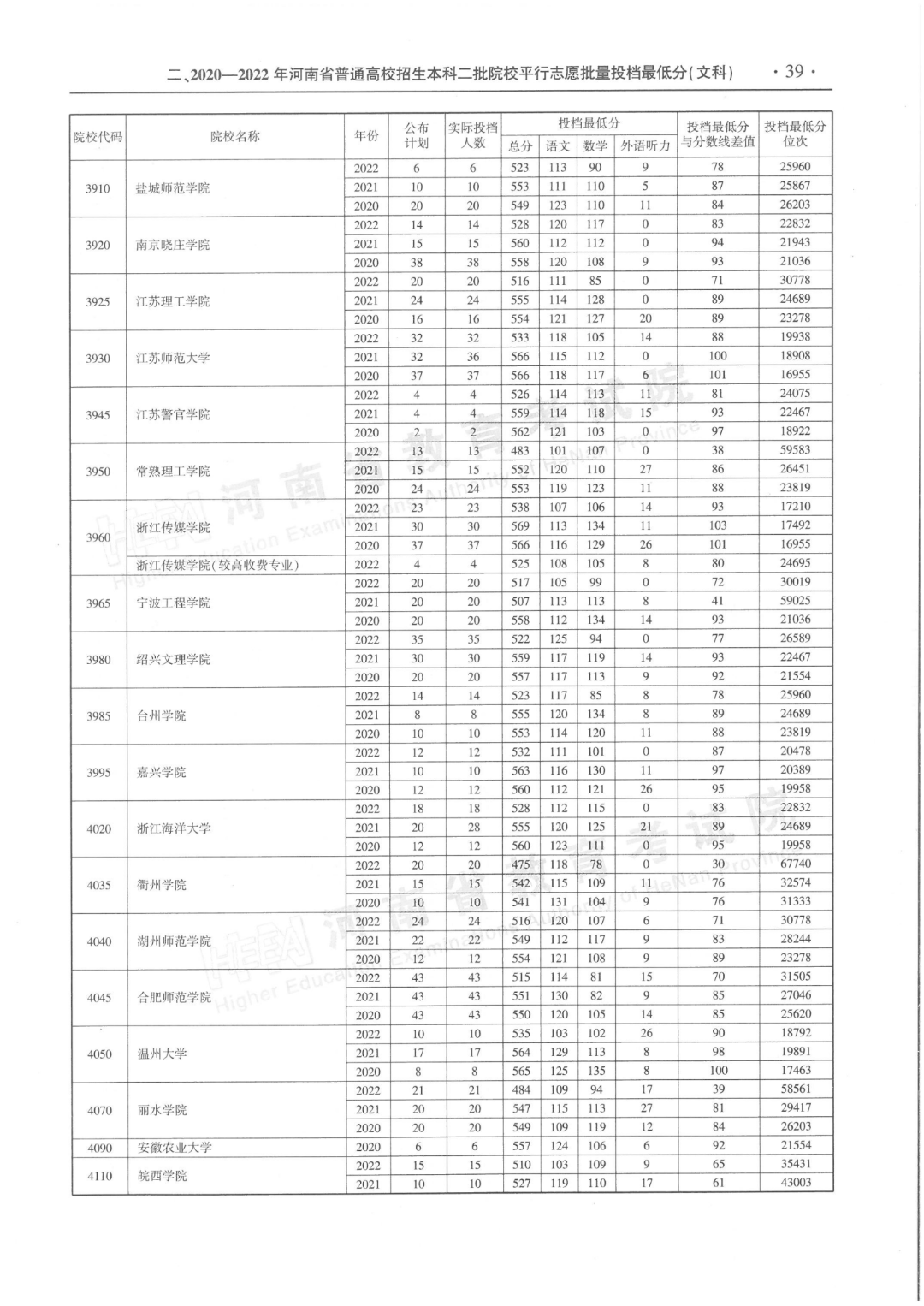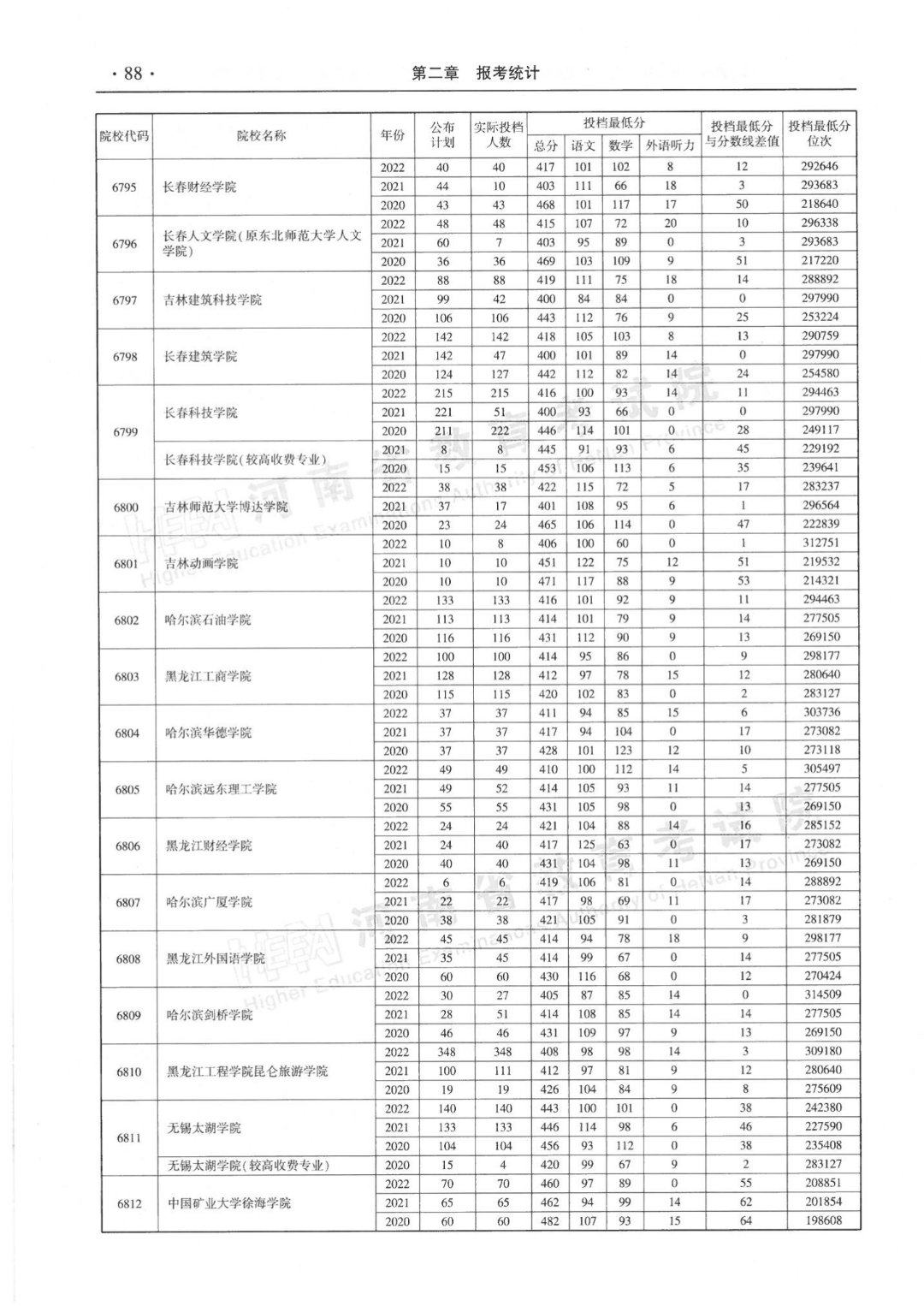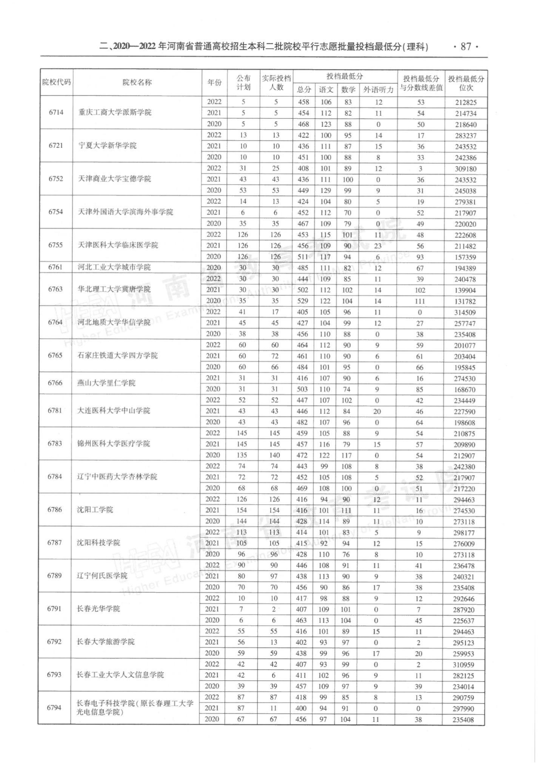我省近三年来,本科二批平行投档的最低分数线如下。