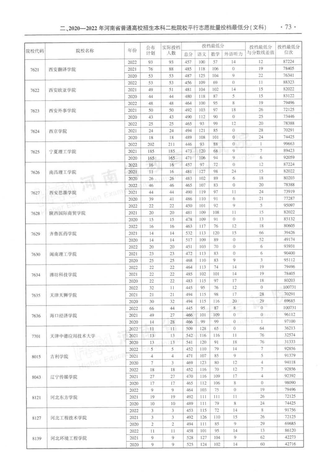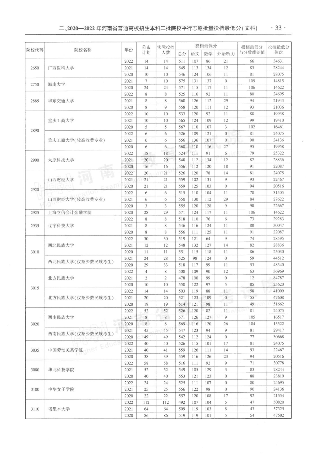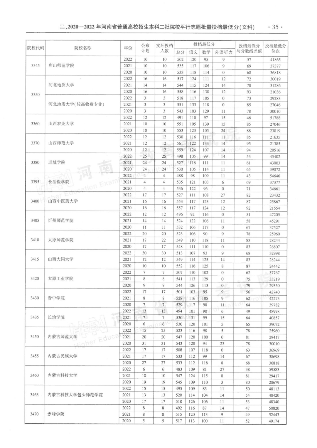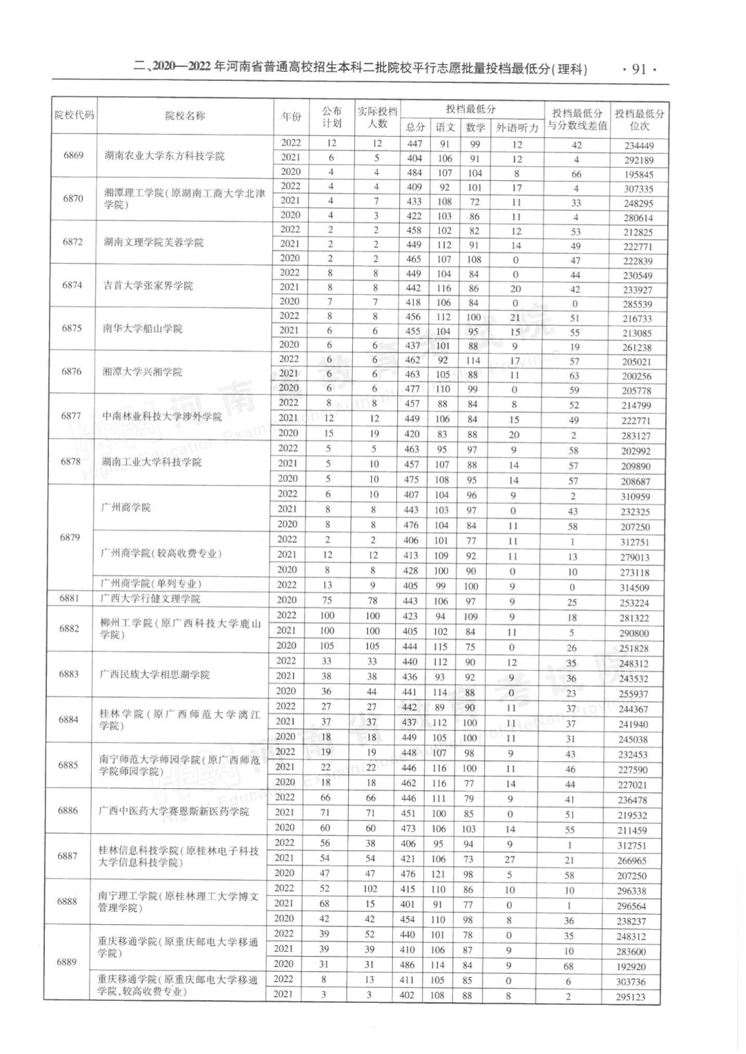 我省近三年来,本科二批平行投档的最低分数线如下。