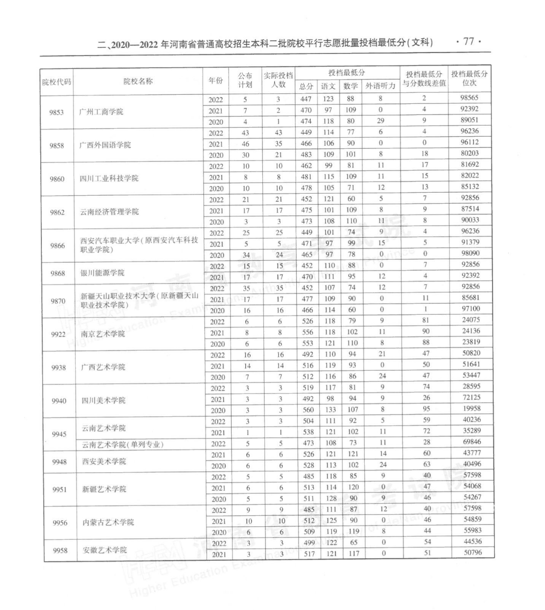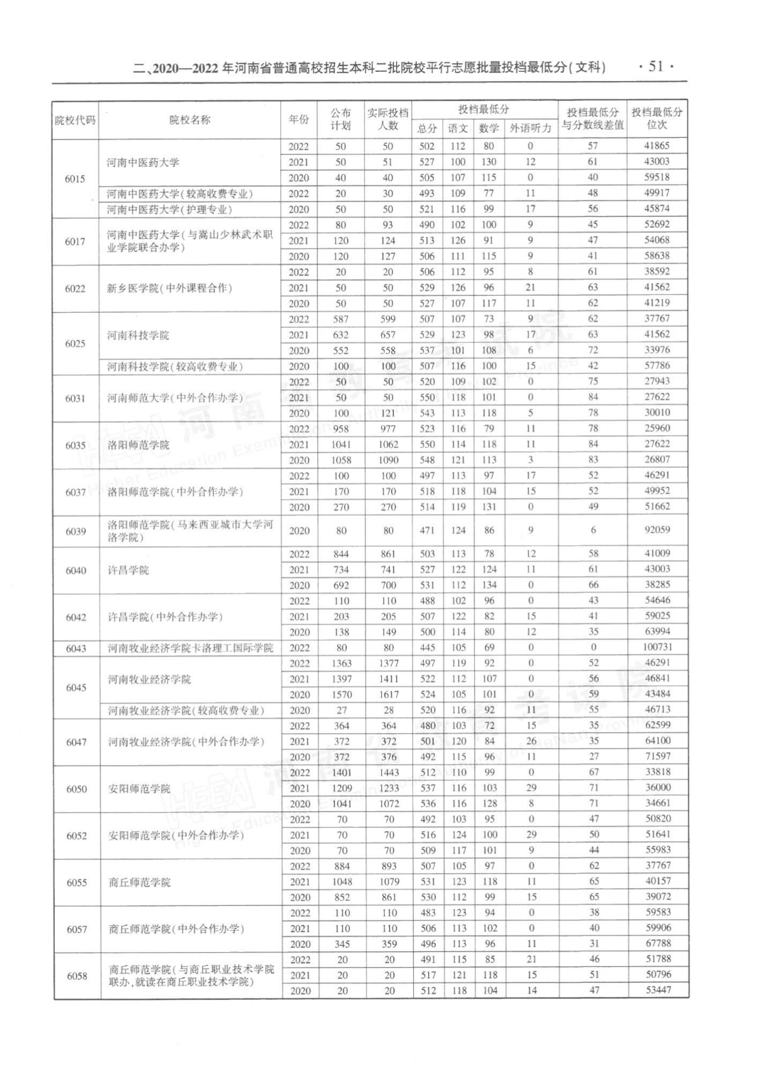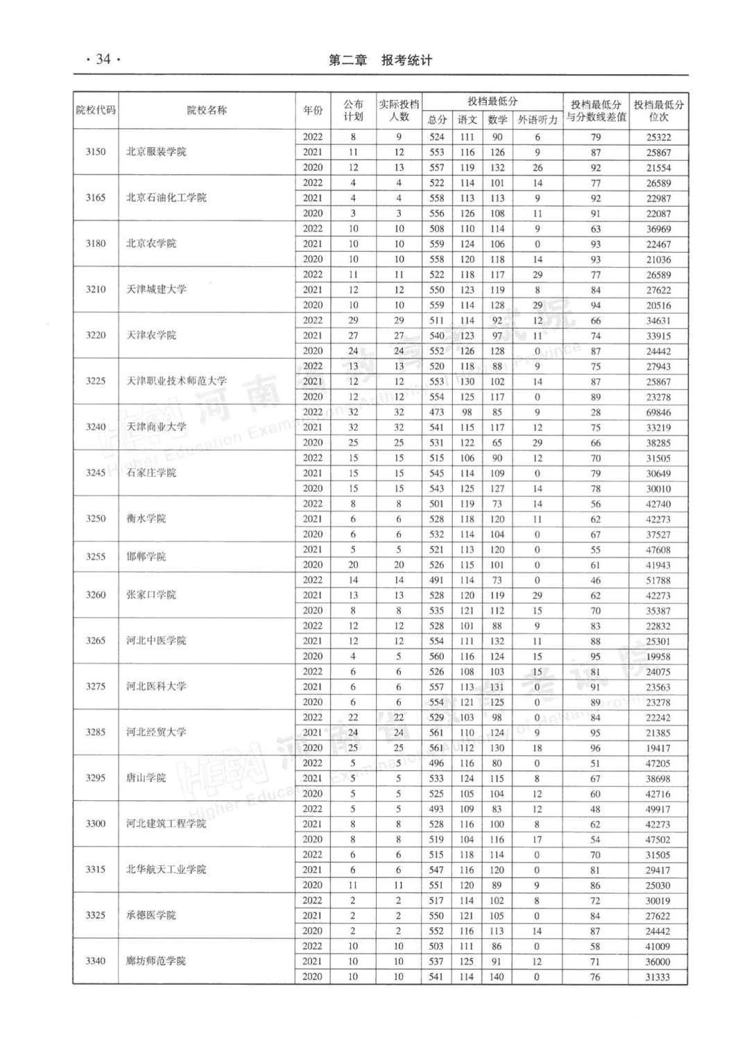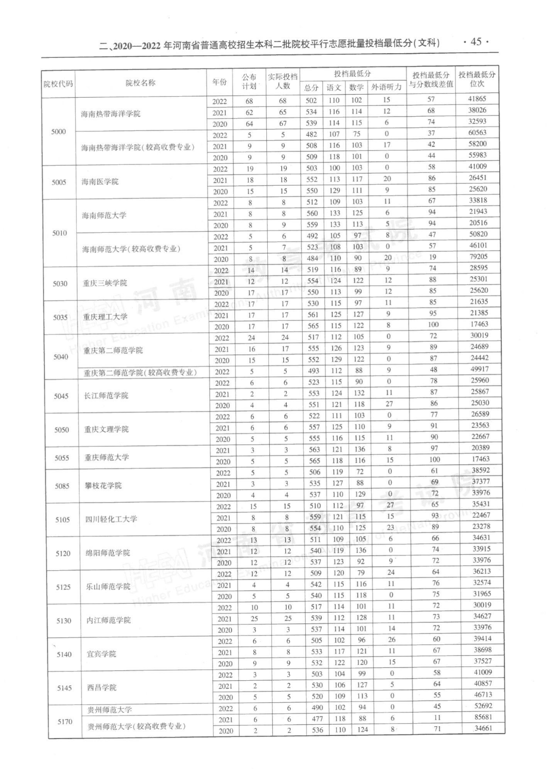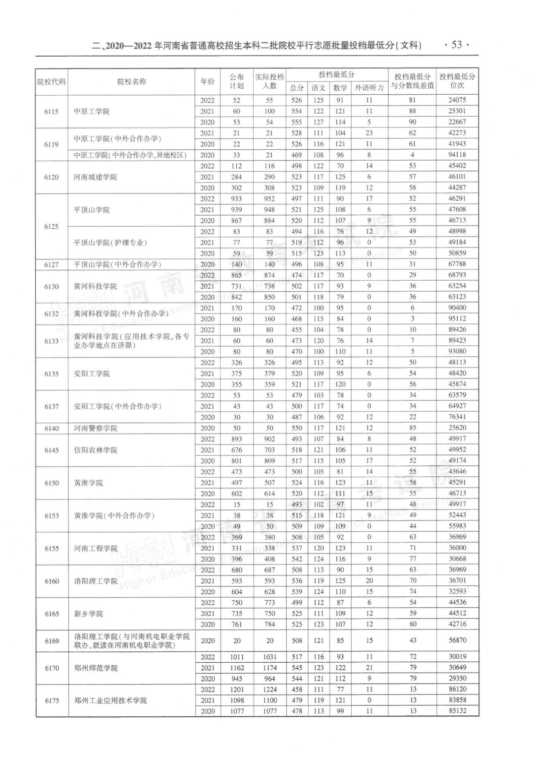 我省近三年来,本科二批平行投档的最低分数线如下。