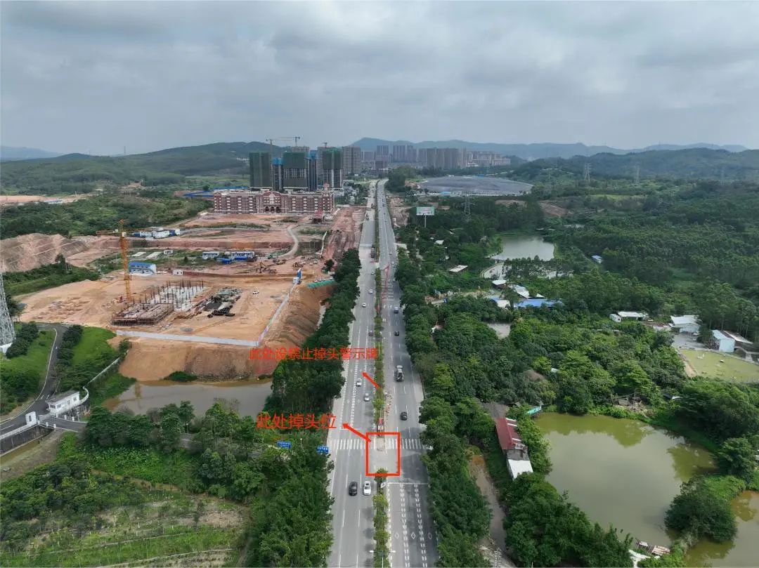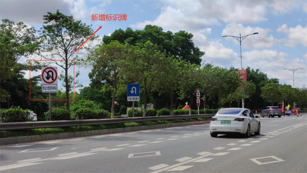 在气象局路口的掉头位置,增设了一块禁止大型货车掉头的警示牌(如下图所示)。这样可以防止大型车辆在此掉头造成交通堵塞。