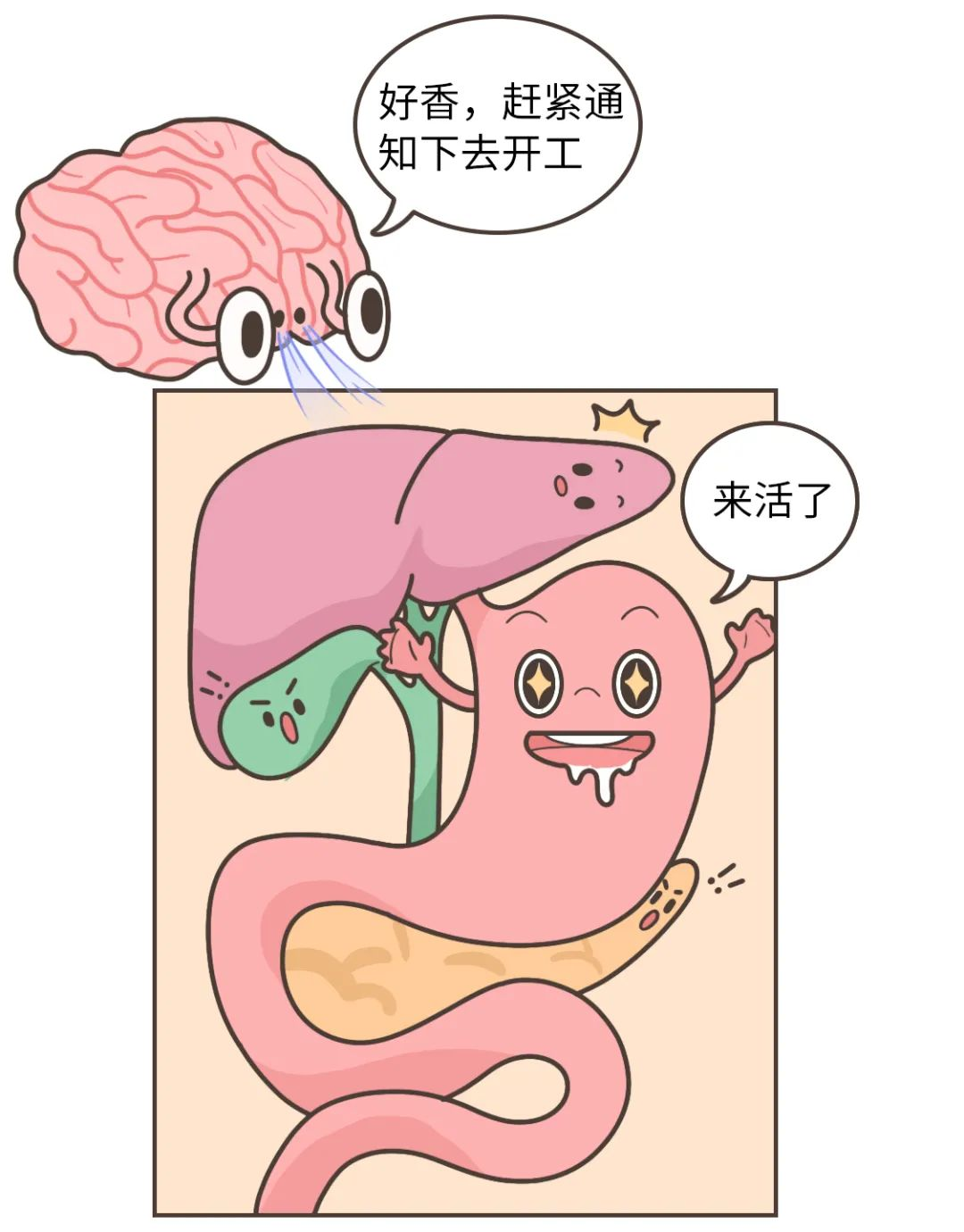 等到粽子香传来时,其实大脑已经开始通知胃和各器官(如胰腺、小肠等)准备开始工作了。