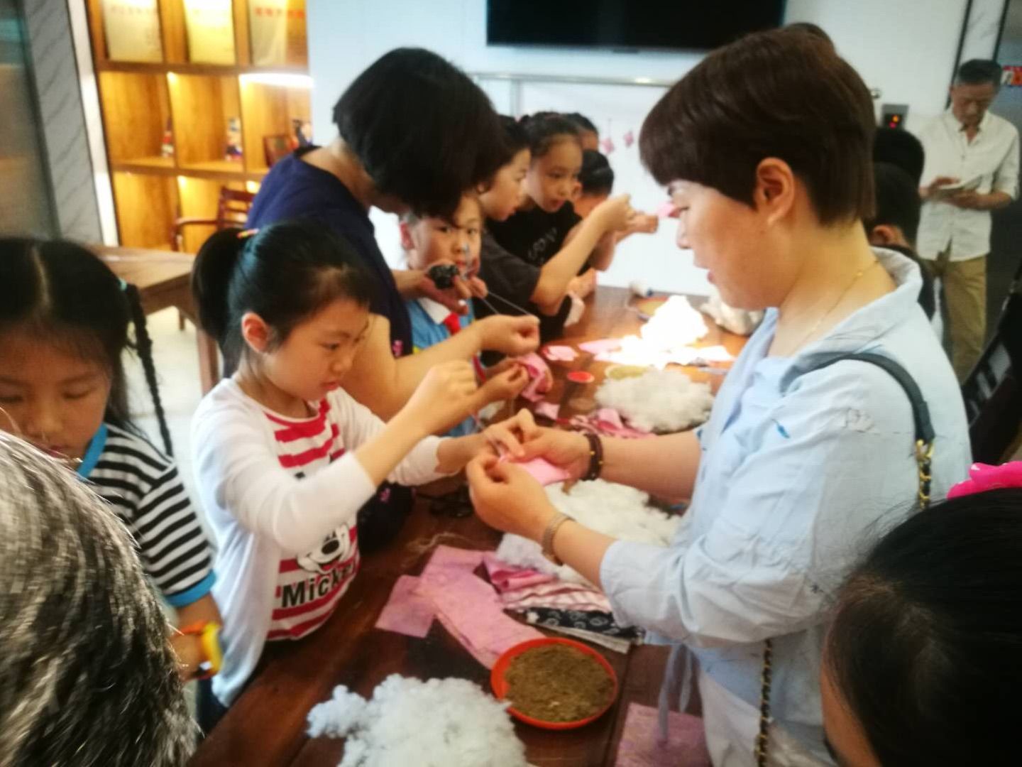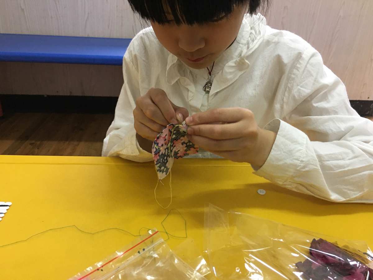 此外,志愿者还向大家发放了香囊制作材料包。在志愿者的带领下,小朋友们一边听着制作方法的讲解,一边耐心地选布袋、缝制、装艾叶、收口塑形。经过半个多小时的认真制作,一个个漂亮精致的香囊就新鲜出炉了。浓浓的艾叶香在教室里弥漫开来,沁人心脾。大家举着亲手缝制的香囊,满怀喜悦。