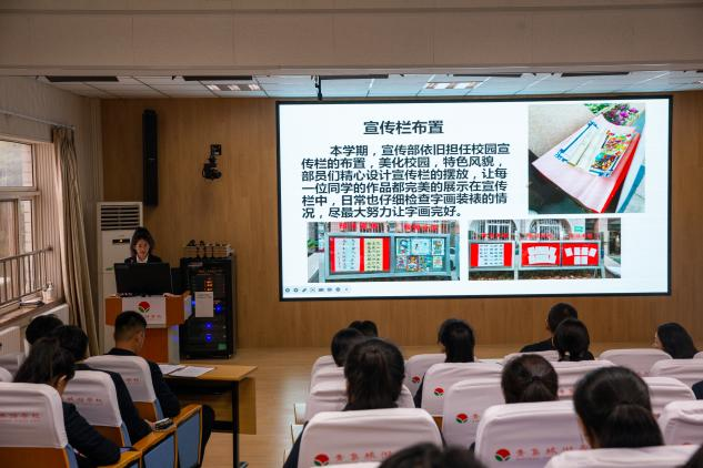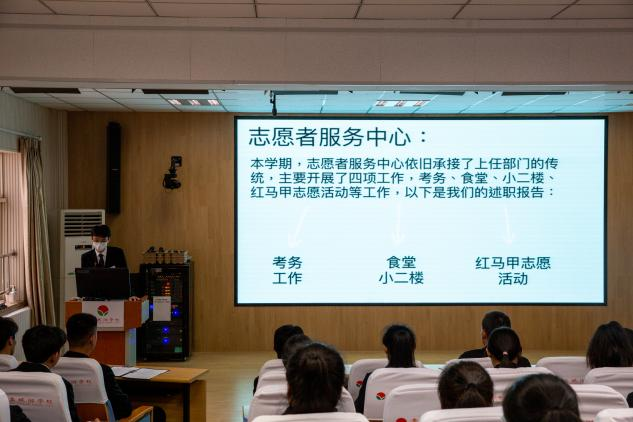 学生会主席韩梅做了一份2022-2023年度的工作汇报。报告总结了过去一年“一会三中心”总体的工作情况,并指出需要在组织结构优化、工作效率和质量提升方面进行改进。同时,报告还强调了在成员选择和使用上的严格把控,以确保打造一个符合“一会三中心”服务宗旨和理念的精英团队。此外,各部门部长也做了详细的工作总结报告。