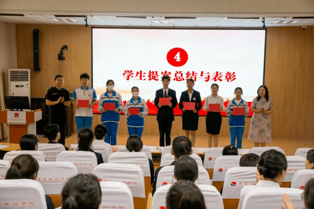 林凡涛总结了学生代表反映的问题和学生“微心愿”征集情况,并现场答复了相关内容。这些问题涉及“一会三中心”制度改革、学生个性展示、后勤服务等多个方面。学校领导高度重视学生提案,并针对部分提案进行了答复。徐冬焱为优秀提案代表颁发了证书,以表彰他们为学校发展所做出的贡献。