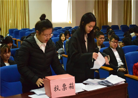 接下来,会议进入第二十九届学生会换届选举阶段。部长和干事们依次进行了精彩的竞选演讲,全体学生代表公平公正地投下了自己庄严的选票。
