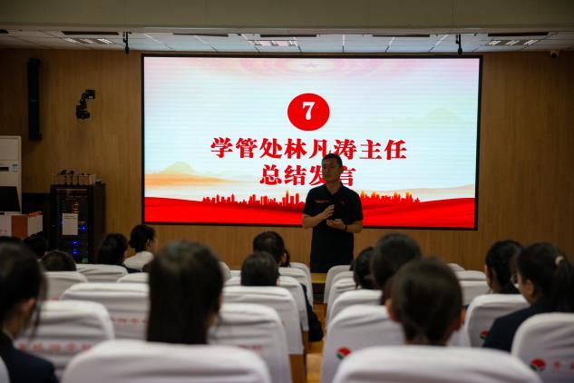 最后,林凡涛为大会作了总结讲话。他对“一会三中心”这一学年的工作给予了肯定,并强调了各个职位所肩负的不同目标和责任。他鼓励同学们在为学校发展和师生服务的过程中不断提升自我,同时对下一步学生会改革提出了具体要求,以进一步提高各部门的工作效率、提升奉献精神和满意度。学生会是一个极佳的锻炼平台,希望同学们珍惜机会,为校园贡献自己的力量。