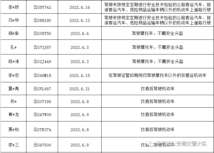 为了营造一个安全、畅通、有序的道路交通环境,开远市公安局交警大队在2023年6月持续开展“五大曝光”行动。通过舆论关注、信用惩戒、跟踪问题整改等措施,对交通违法行为人形成震慑,督促相关企业认真落实主体责任,加强整改落实。现将曝光内容公布如下:突出违法车辆曝光。