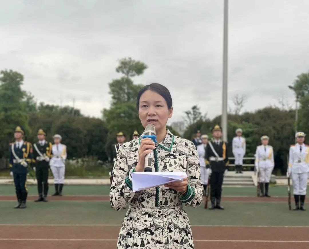 天高云淡,凉风习习,铿锵的步伐敲碎了晨曦的寂静。国旗护卫队的队员们整齐划一,目光坚定地护送着国旗入场。全院师生在国歌声中肃立,注视着庄严的五星红旗冉冉升起。