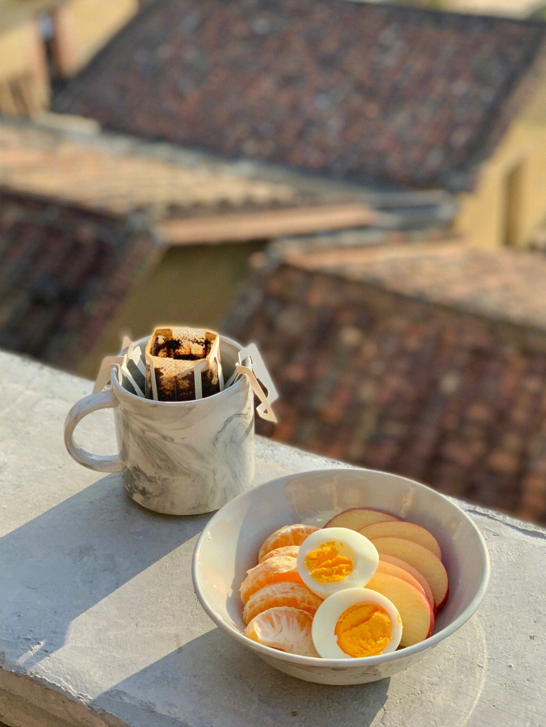 在自己的花园里享用早餐。