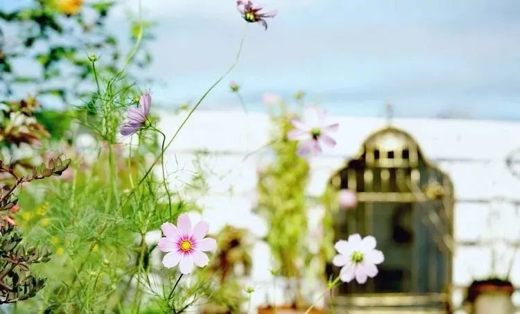 当花草攀爬到空荡荡的篱笆上时,