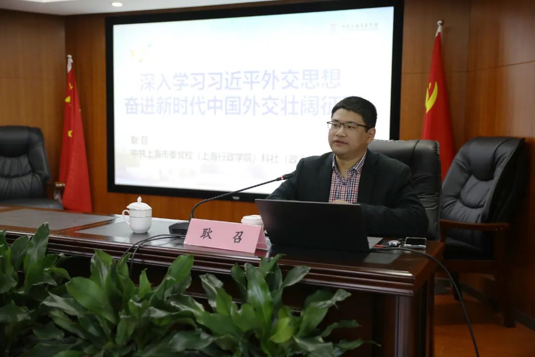 耿召博士从习近平外交思想的时代背景、总体框架和核心要义等方面,对习近平外交思想进行了系统讲解。他强调,要掌握习近平外交思想的科学思想方法,提升正确观察和把握国际形势的能力。