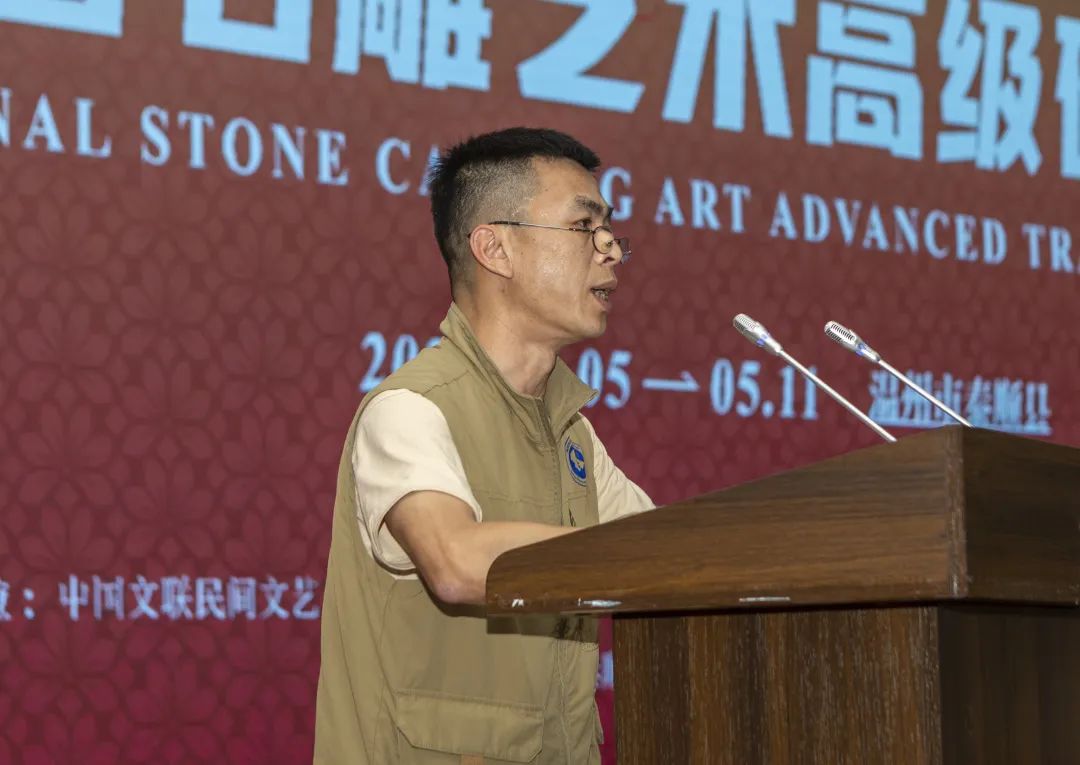 5月10日下午,中国民协举办了“山花英才”培育计划:全国石雕艺术高级研修班的结业仪式。中国文联民间文艺艺术中心主任徐岫鹃、浙江省民协副主席兼秘书长郑蓉、中国文联民间文艺艺术中心志愿服务处副处长乔军、浙江省民协副秘书长蒋建云、泰顺县文联党组书记、主席林元兄以及泰顺县文联党组成员、秘书长吴津津均出席了结业仪式,由林元兄主持。